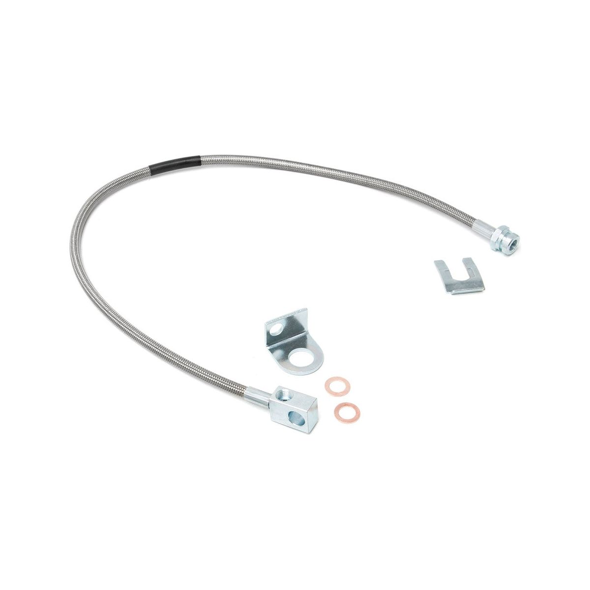 Rough Country's Stainless Steel replacements offer superior protection and a seriously long lifespan. A braided stainless steel exterior keeps your lines free from off-road debris, rocks, and mud that can penetrate factory rubber lines. This durable outer layer also prevents expansion of the internal Teflon layer - even under 4,000PSI - keeping fluid moving to the brake line for a noticeably firmer brake pedal feel. High-quality hollow fasteners at both ends of each brake line provide a leak-free flow path. s at both ends of each brake line provide a leak-free flow path.