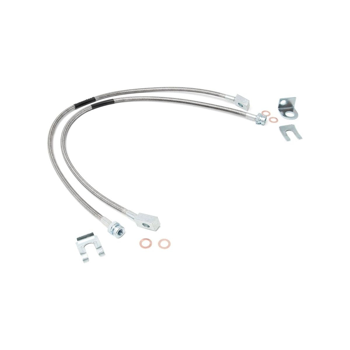 FITMENT: Stainless FR 4-6" Lift Jeep Cherokee XJ/Wrangler TJ/Wrangler Unlimited I ONLY fits models with 4-6in of suspension lift. I Upgrade your worn out rubber brake lines with Rough Country's Stainless Extended Steel Brake Line Kit. Our DOT approved brake line kits offer the necessary extra length to install your application, perfect for anyone who wants to swap out poor performing or decaying factory brake lines.