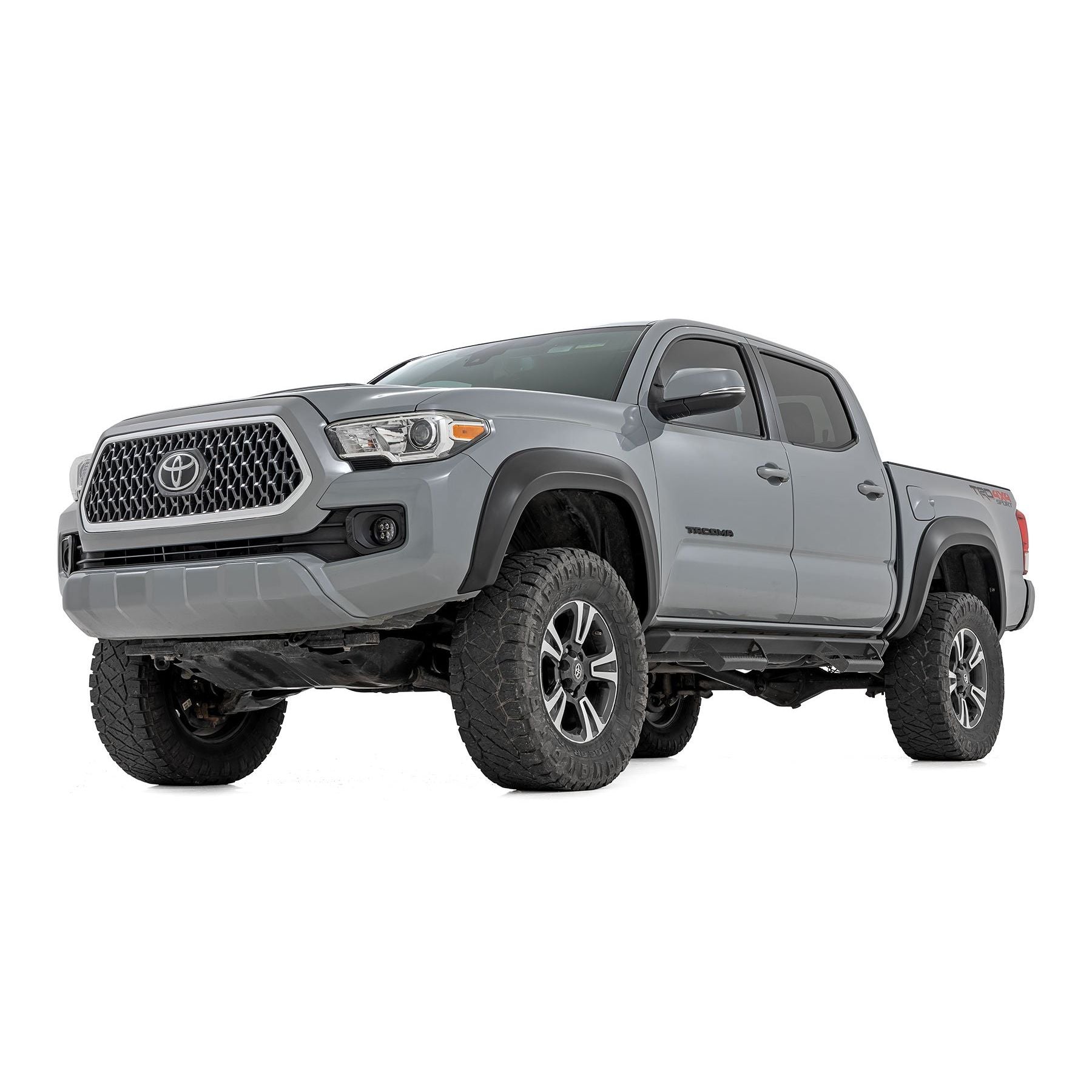 Style and Protection. Unlock the power of real protection and custom style with Rough Country's Sport Style Fender Flares for your Toyota Tacoma! Offering 5.75 inches of Flare Height, you know your truck is getting the coverage it needs from flying debris and road grime. Not only will these flares safeguard your vehicle, but they will look great too - featuring a bold custom look that stands out and turns heads. Plus, if you want to take your customization game up a notch, these fender flares are easily paintable so they can match your truck in color and style. Get ready to rock this new rugged look ΓÇô with Rough Country's Tacoma Sport Style Fender Flares!