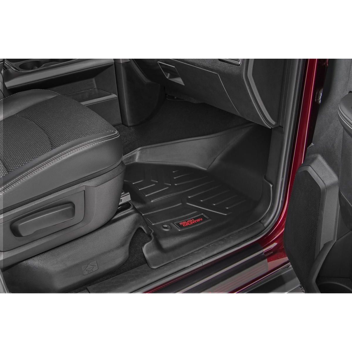 Where simple rubber floor mats fail, Rough Country's line of Floor Armor is guaranteed for life and will never crack, split, or break-down over time. The high-quality design extends the lifespan of your carpets and the raised-lip design ensures your interior will always be protected from mud, moisture, and more.