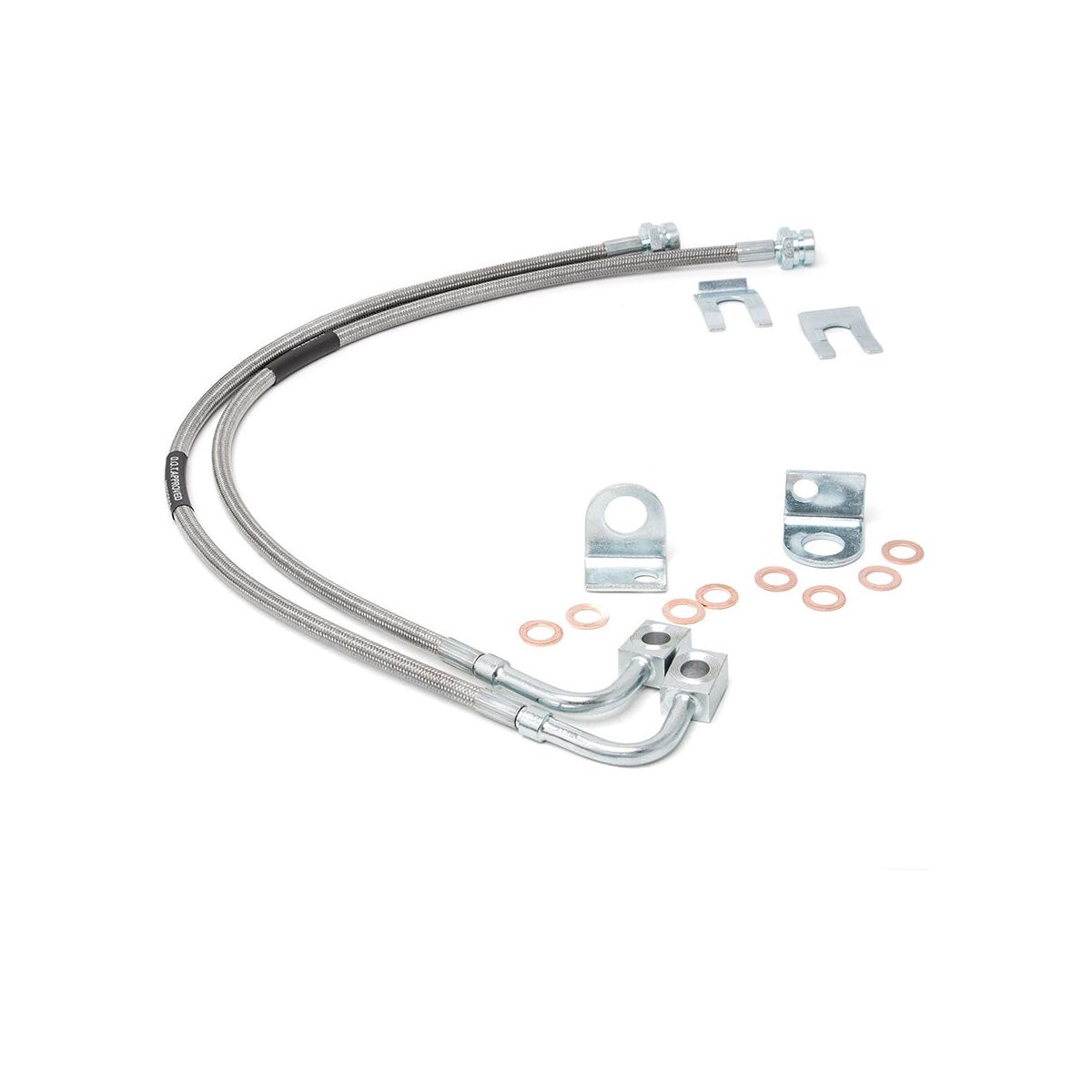 Rear brake line - Length: 22.5in I Upgrade your worn out rubber brake lines with Rough Country's Stainless Steel Extended Brake Line Kit. Our DOT approved brake line kits offer the necessary extra length to install your application, perfect for anyone who wants to swap out poor performing or decaying factory brake lines.