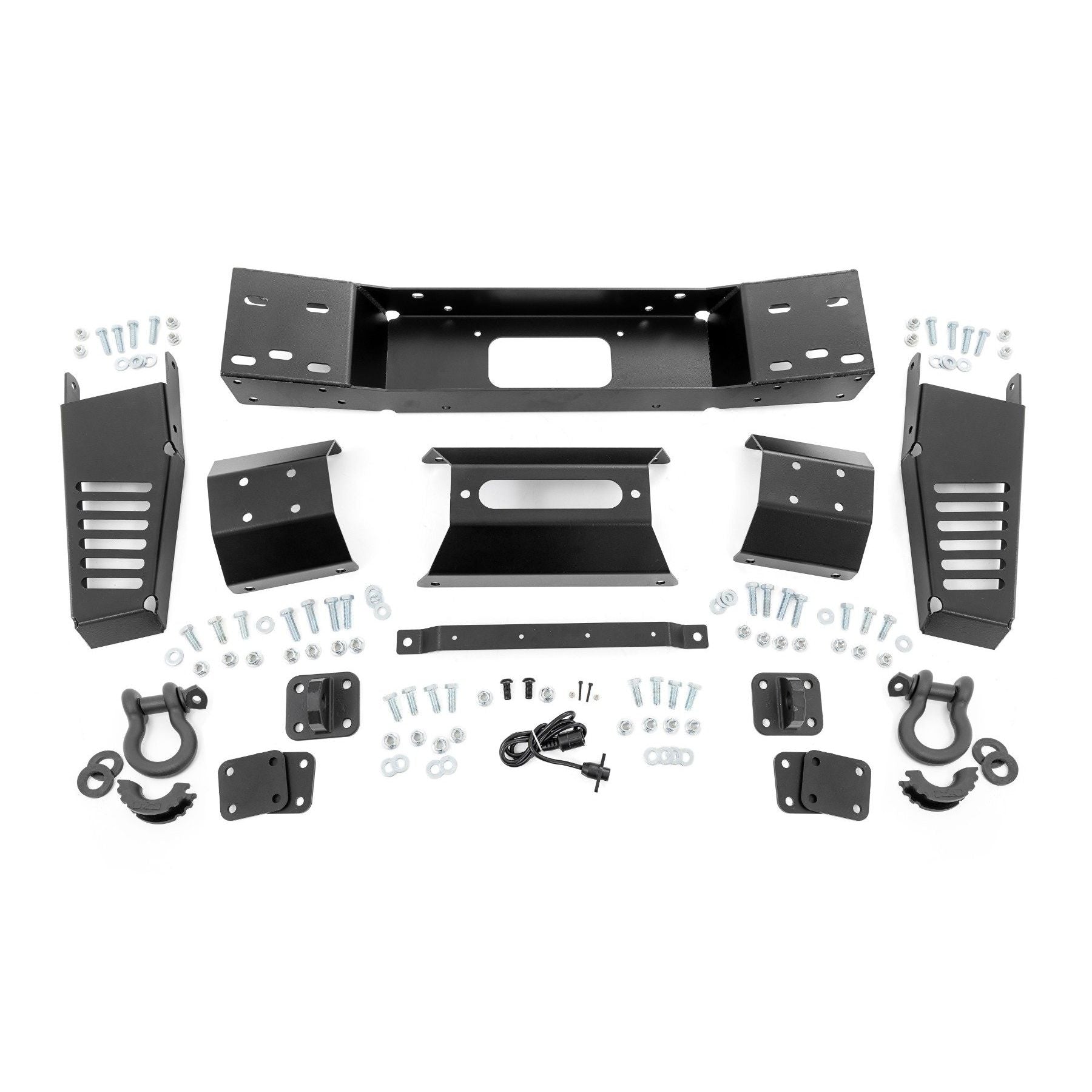 Premium Quality and Style. Constructed from rigid 7-gauge material, this mount replaces your factory's inner bumper structure to provide maximum durability and strength. The optional D-ring mounts offer even more versatility for recovery situations and come with D-ring mount spacer plates. And for added convenience, this Hidden Winch Mount includes a remote harness connector for easy winch operation.