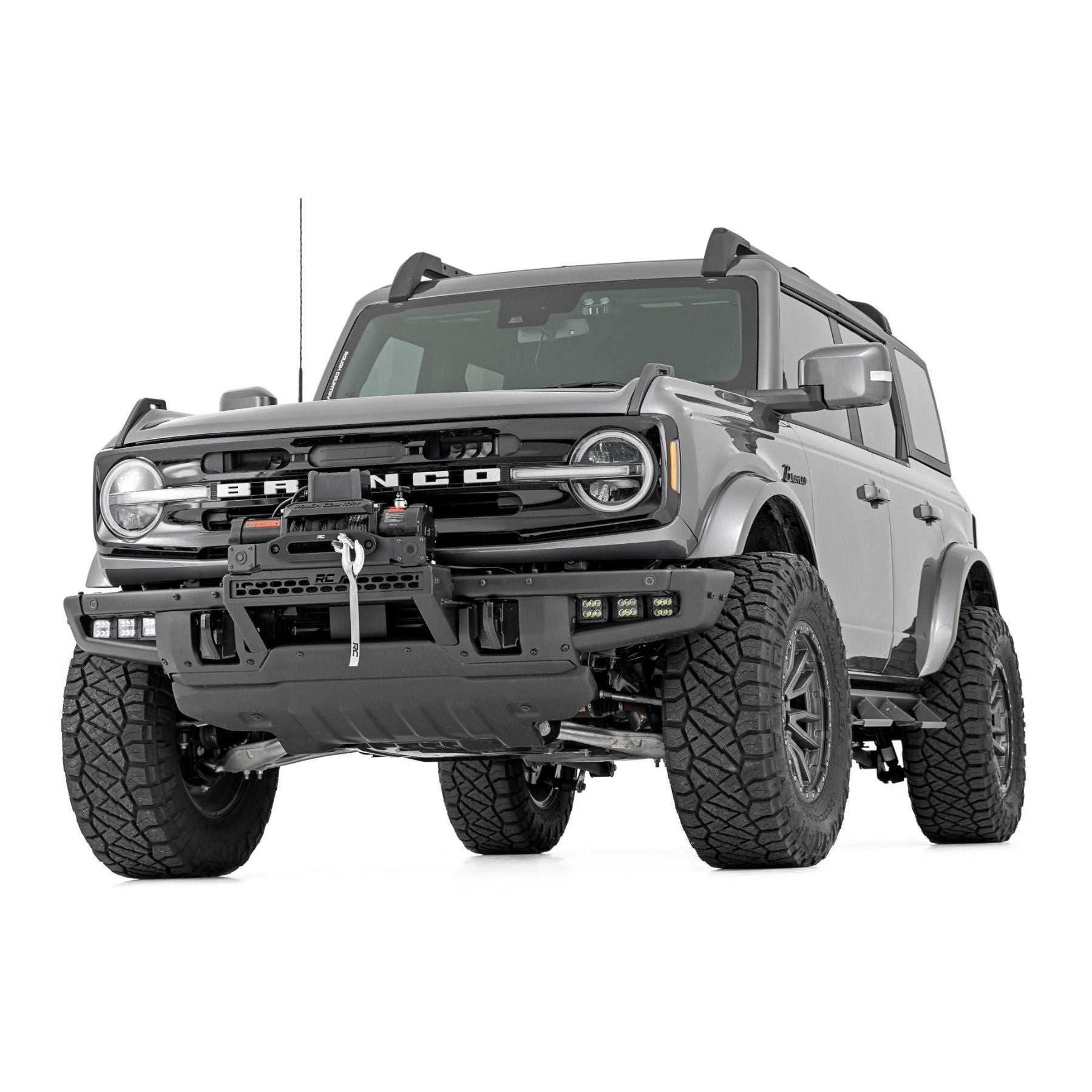 ROUGH COUNTRY High Winch Mount | All Models | 12000S | 20 Inch Black Single Row LED | Ford Bronco (21-25) | 51099