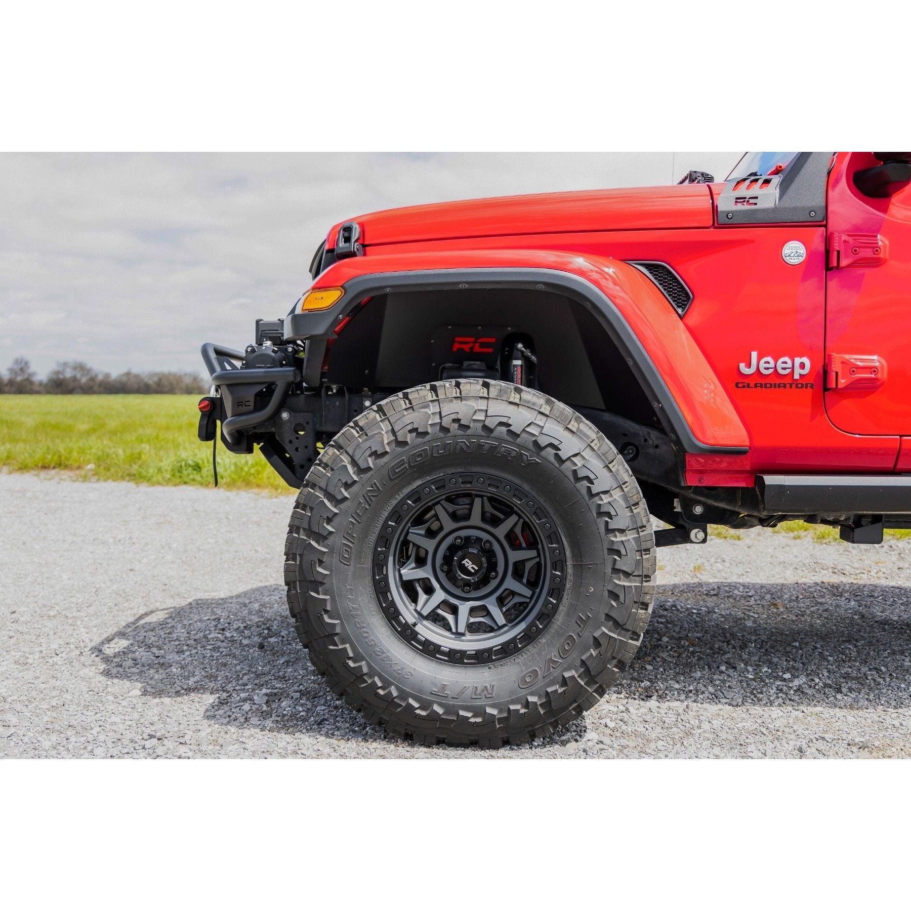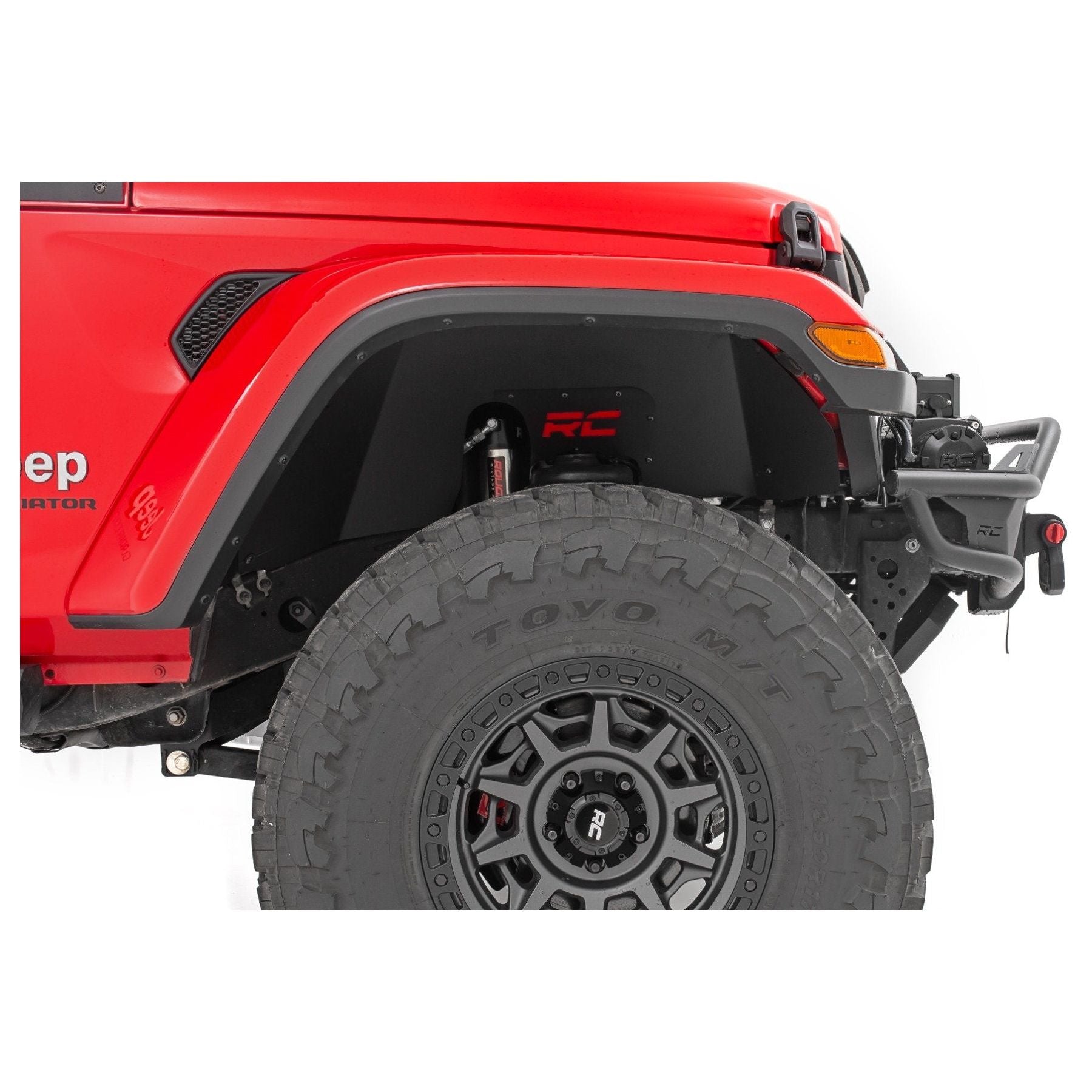 Superior Solution. Clean up the look of your inner fenders with Rough Country’s JT Front Inner Fender Liners. This eye-catching inner fender upgrade helps protect your engine bay from dust, mud, and debris, and can be easily installed in no-time flat!