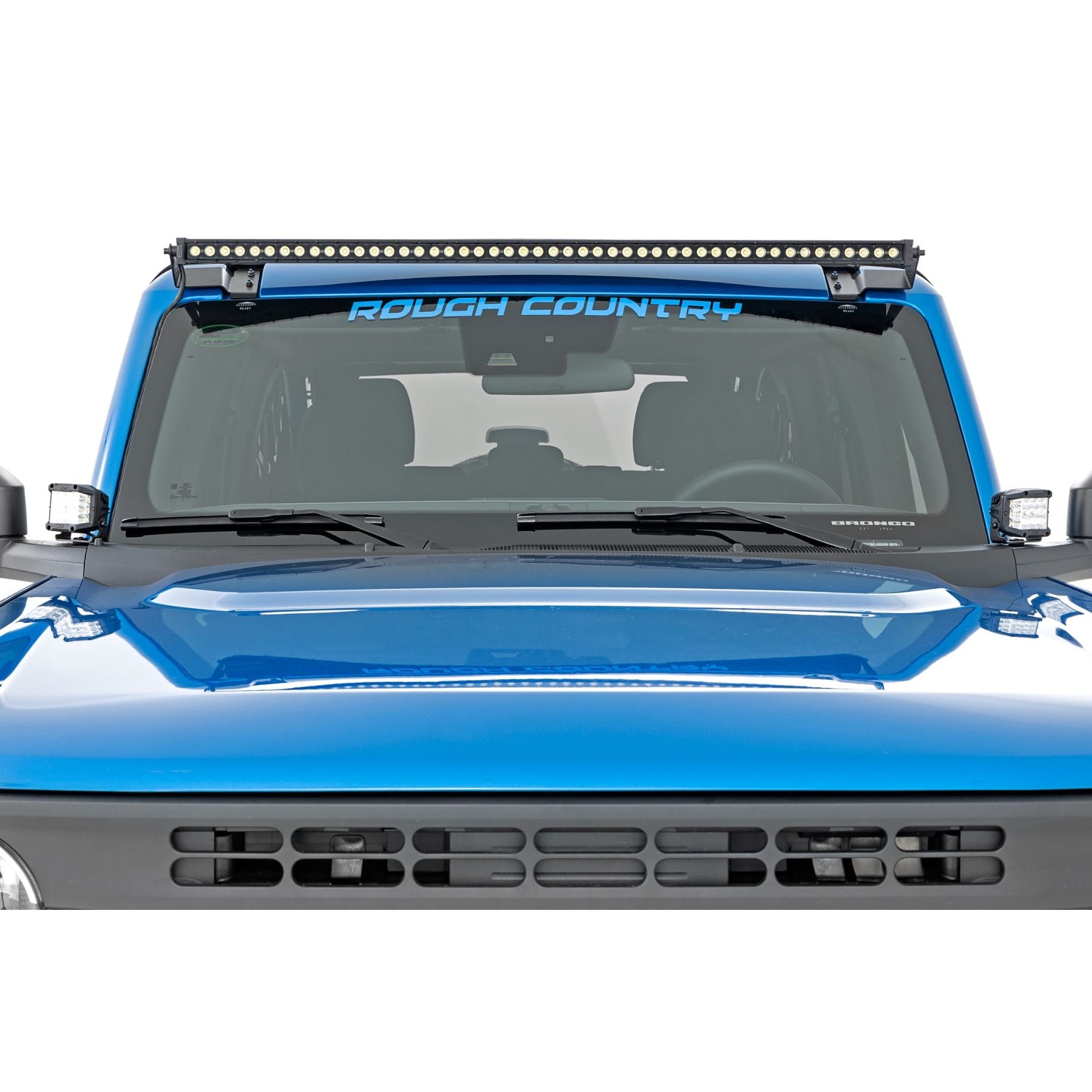 Rough Country LED Ditch Lights for the Ford Bronco bring powerful side visibility to your off-road experience. Safely navigate the trails after dark, enhancing your safety and awareness without compromising the aesthetic of your vehicle.Customize Your Lighting Experience: Choose from a variety of lighting options to suit your needs! Rough Country's LED Ditch Lights for the Ford Bronco are available with the Black Series, Spectrum Series, OSRAM, Amber Lens, or DRL LED options, so you can tailor the setup to match your style and performance requirements. Whether you need a bold, sleek look or enhanced visibility in low-light conditions, there's a perfect option for every off-road enthusiast.Weather-Resistant Performance: Built with an IP67 waterproof rating, these LED lights are ready for any weather condition, offering reliable performance even in the harshest environments.Rugged and Durable Construction: The die-cast aluminum housing ensures long-lasting durability and superior protection against wear and impact, while the moisture breather technology keeps your lights clear and bright for longer.Complete Lighting Kit: Each kit includes a premium, flat-wound wiring harness with an on/off switch, offering ease of use and quality you can depend on. Heavy-duty 11 gauge steel brackets ensure solid, long-term support for your lights.Quick and Easy Installation: Enjoy a smooth installation process with minimal drilling required. This kit offers a seamless fit with only slight modifications needed to ensure it integrates perfectly with your vehicle.Engineered for Adventure: Whether you're cruising off-road at night or navigating through rough terrain, Rough Country LED Ditch Lights for the Ford Bronco give you the confidence to conquer any adventure with clarity and style. 100% Bolt-On Installation: Effortless setup with no drilling or modifications required