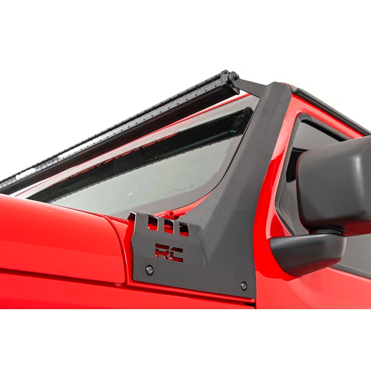 COMMAND THE DARK with Rough Country 50-inch LED Upper Windshield Light Bar Kit. This easy-to-install kit is the ultimate solution for adding an aggressive looking, forward-facing lighting system to your Jeep! With its modern, stylistic design and superior strength, this upper windshield mount holds your 50-inch Light Bar between the top of your Wrangler's windshield and roof, spanning the entire width of the roof and giving a killer look. Easy install