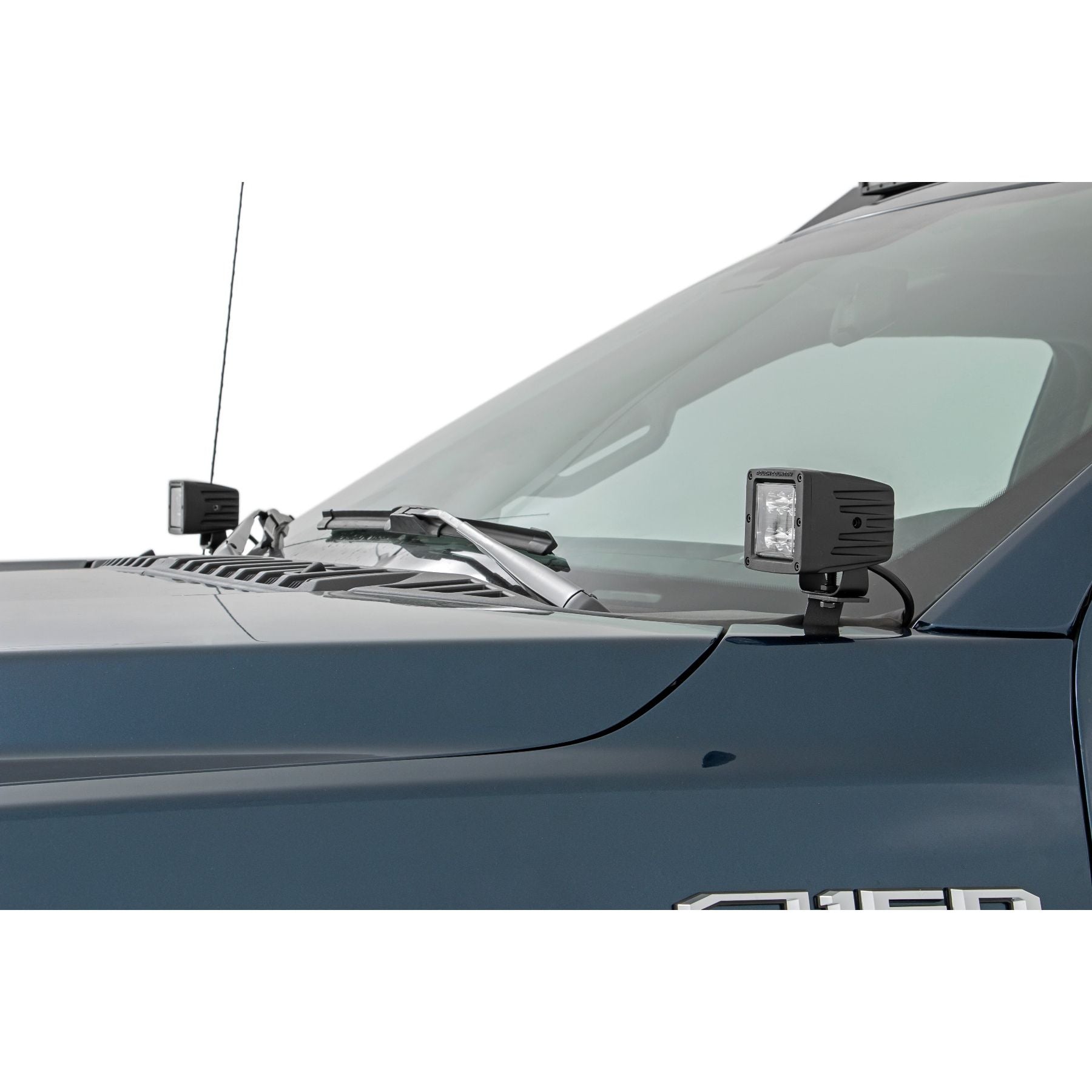 Whether it off-road riding at night or navigating the trails after hours, Rough Country Lower Windshield LED Ditch Mounts gives you the strong side illumination you need. Never miss another turn, and safely maneuver through any off-road situation in the dark without obstructing visibility from inside the cab.