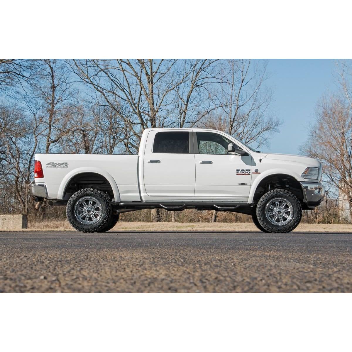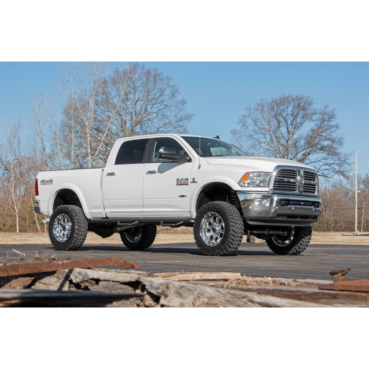 On vehicles equipped with a two piece driveshaft & carrier bearing as on the Mega Cab, there is the potential for take off vibration, depending on the severity I Compliment your RAM 2500's aggressive, good looks with Rough Country's new 5-inch Lift Kit with lifted coil springs. New model RAM Trucks come with a wealth of impressive features right from the factory. Rough Country's new 5-inch kit was engineered to retain these impressive factory specs while bumping up performance and durability where it's needed most. The result is a lifted beast with a mean profile and lush ride-quality that'll make other RAM owners wonder where you got yours from!