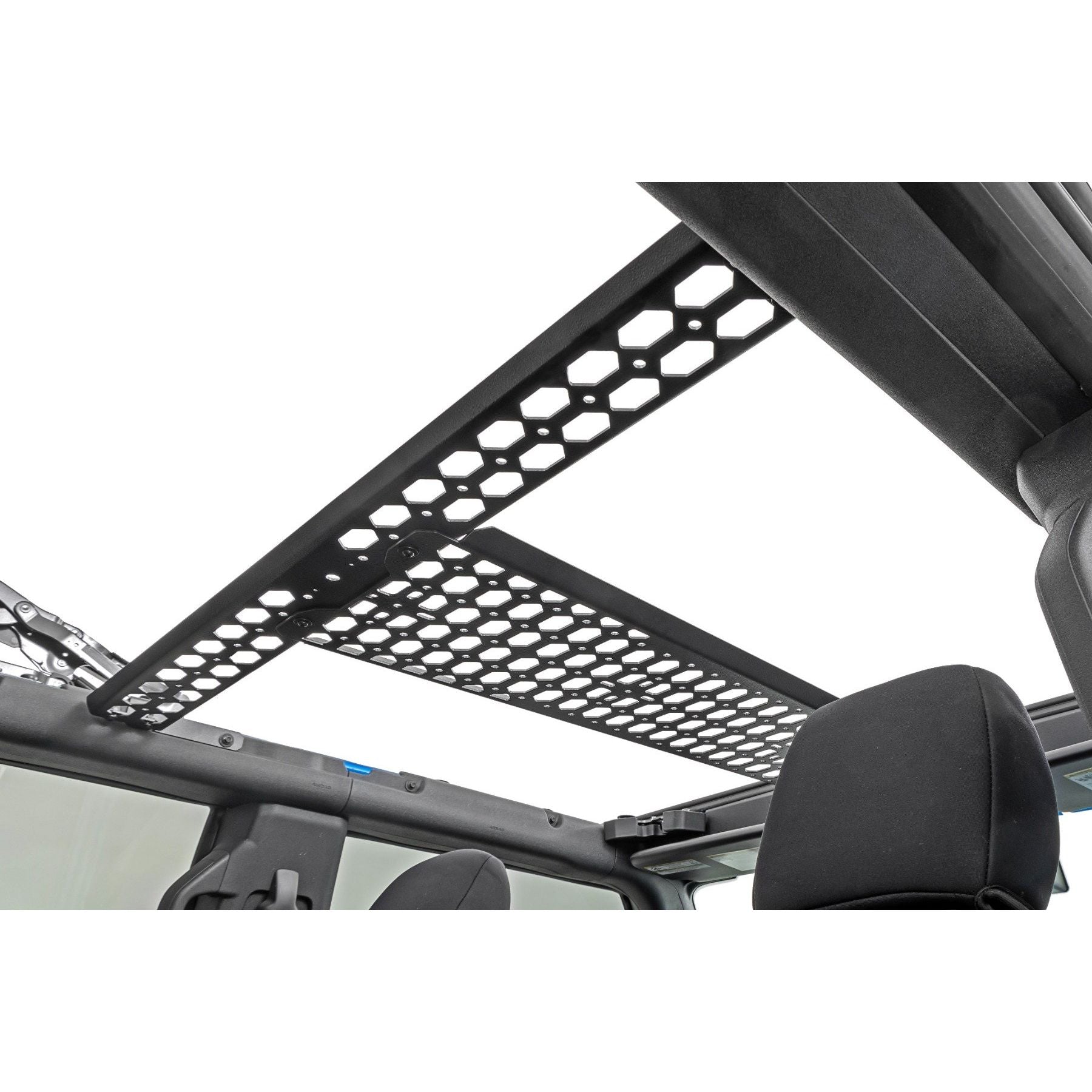 Durable Components. Whether your rig is a workhorse or an off-road overlander, this kit can be customized to get the job done. This modern solution easily secures overhead allowing endless attachment points to keep your necessities close. Rough Country's Molle Rack system is constructed of heavy-duty 1/8" thick steel and is coated with a durable powder coat finish!