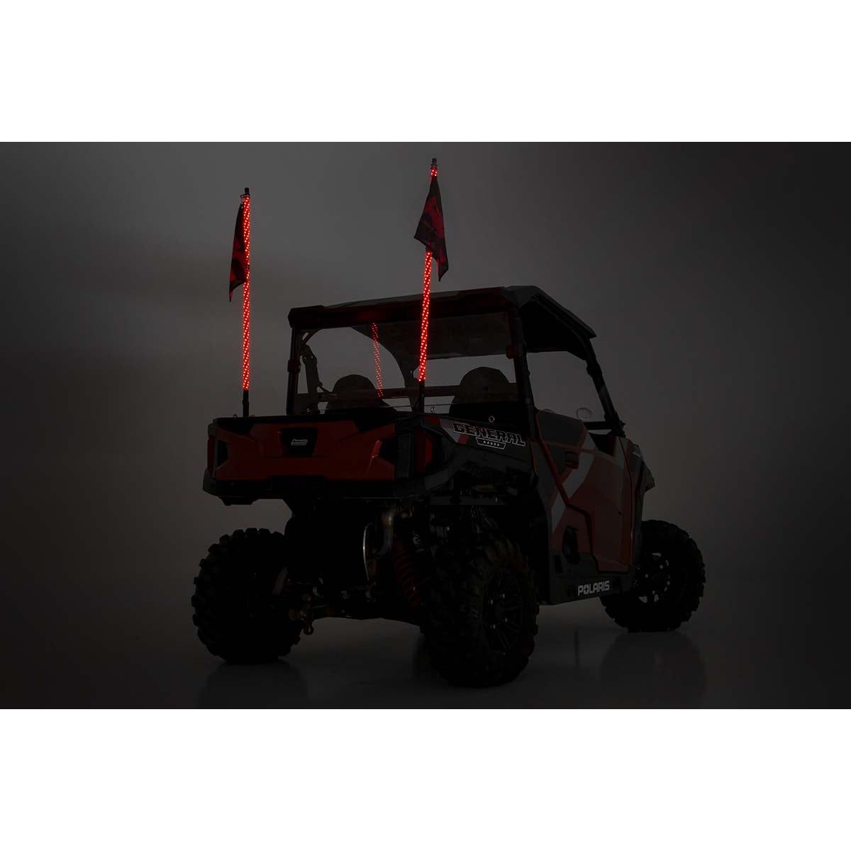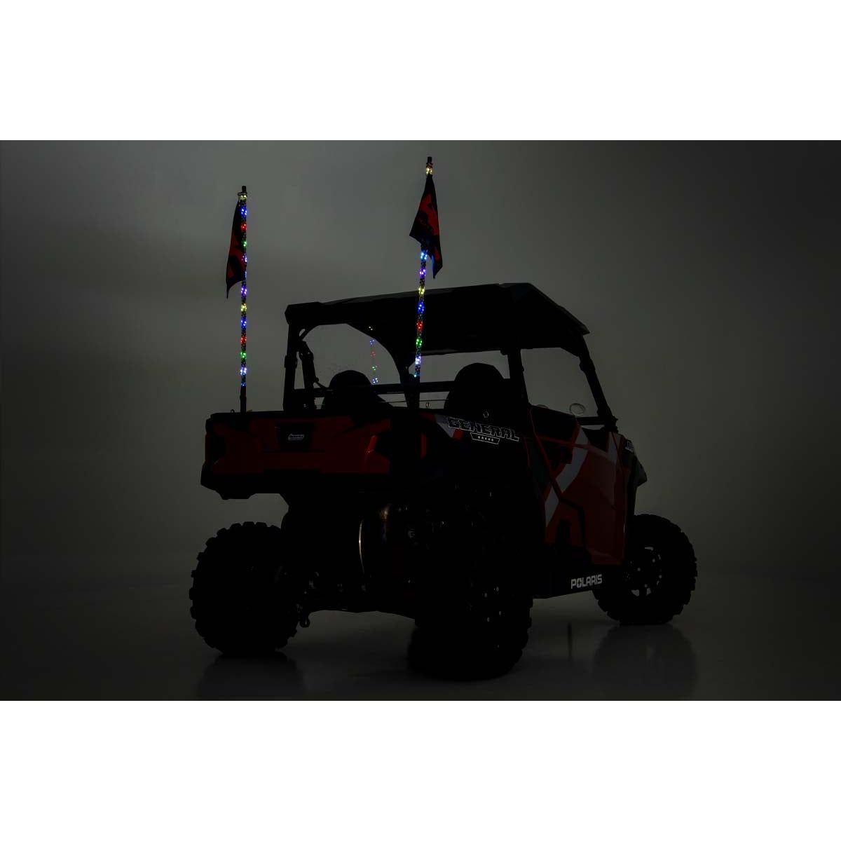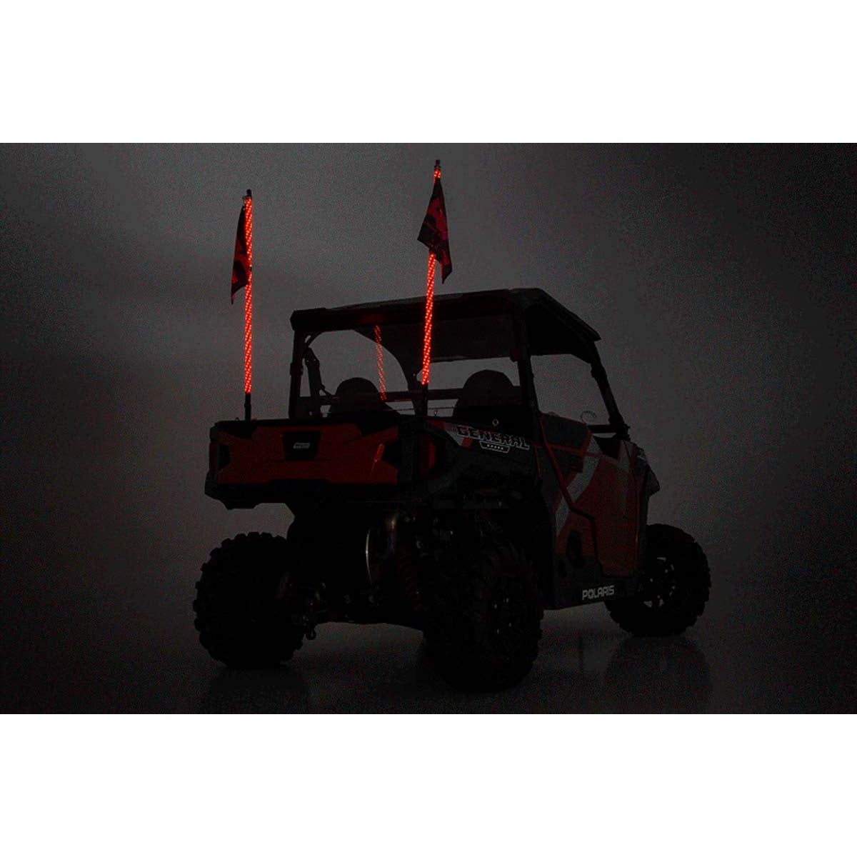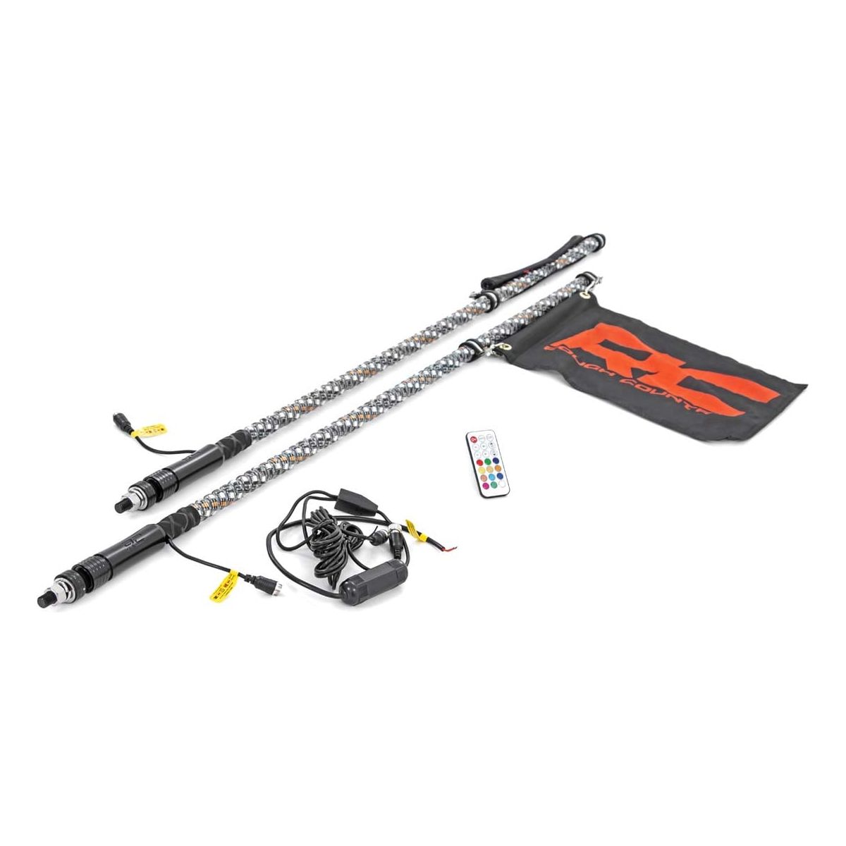 FITMENT: Whip 4' Long Pair I California Residents: Prop65 Warning. I Turn heads along the trail with Rough Country’s two-piece LED Whip Light kit. These 4 foot tall, flexible LED whip lights feature a mind-blowing array of 300 unique, colorful patterns such as strobe, fade, rainbow, swirl, chase, and countless more. With 300 LEDs in a spiral formation, these LED whip lights are designed to produce a dazzling display of color combinations that make your vehicle stand out from the pack. Use the handy included remote to quickly change colors, patterns or dim the lights however you desire!
