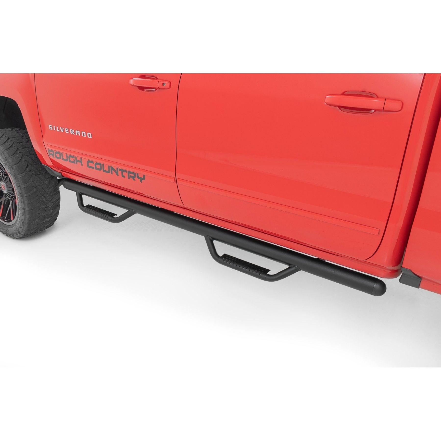 Climbing into your truck should never feel like a workout. With Rough Country's all-new bolt-on Nerf Steps, getting in and out is a breeze. Experience effortless access and elevate your truck with a sleek, durable upgrade.Enhanced Undercarriage Protection: Say goodbye to road debris, rocks, and obstacles that could damage your undercarriage. Our Nerf Steps act as a shield, protecting your vehicle from the harsh elements below.Integrated Stone Guards for Added Protection: Keep your Chevy/GMC 1500 looking like new. The built-in stone guards effectively deflect kicked-up rocks and debris, preserving your vehicle's paint job from potential damage.Sleek, Streamlined Design: No bulky bars here, just a clean, high and tight profile that follows your cab's contours. These Nerf Steps provide a polished, streamlined look that enhances your truck's rugged yet refined style.Built to Endure: Crafted from .084 wall, corrosion-resistant tubing, these Nerf Steps are engineered to withstand anything the road or trail throws at them. From muddy trails to harsh environments, they'll handle it all while staying tough and reliable.Quick and Easy Installation: No drilling required, just bolt them on and enjoy a hassle-free installation. Spend less time working and more time exploring with this straightforward, user-friendly design.Limited Lifetime Warranty: Backed by Rough Country's Limited Lifetime Warranty, these Nerf Steps provide lasting durability and peace of mind for years to come.Step up your truck's style and protection with Rough Country Nerf Steps. Easy installation, superior defense, and a sleek, high-end design, everything you need to take your vehicle to the next level. Sleek Drop Step Design: Features a functional drop step design, offering easy access to your vehicle while maintaining a stylish look.