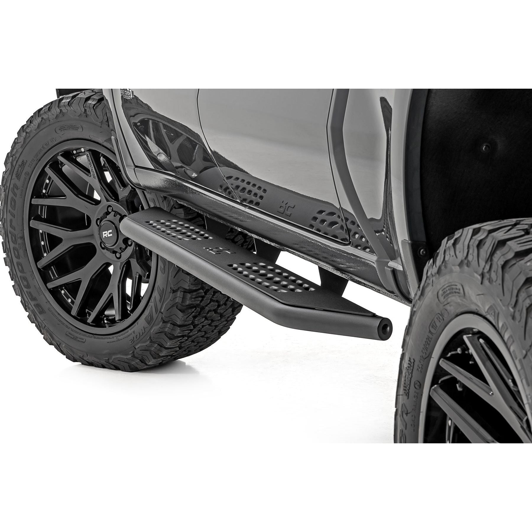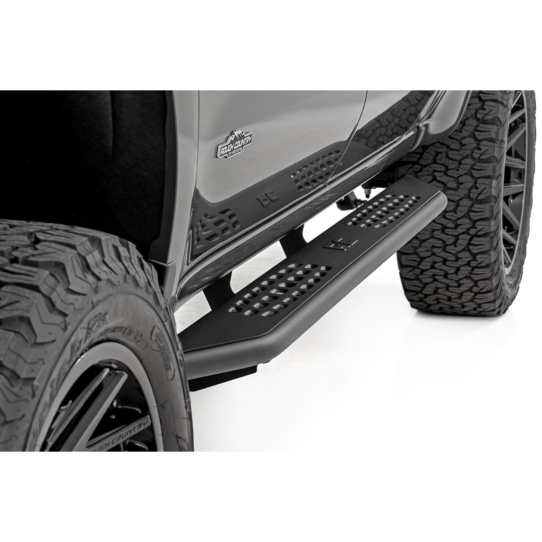 The Rough Country OV2 running board offers both rugged durability and a generous stepping area for easy entry and exit of your Chevy/GMC 1500 or 2500HD. Its corrosion-resistant finish and easy no-drill installation process ensure a long-lasting and hassle-free upgrade to your vehicle. Backed by a limited lifetime warranty, these running boards provide peace of mind for any off-road adventure, making them a reliable investment for your GM's performance and style.Rugged Durability: Made from durable steel and wrapped with a tubular side wall, the OV2 Running Boards offer reliable protection against rocks and debris the trail throws your way. The 1 ┬╛ inch steel tubing provides added body protection, ensuring your GM stays in top condition no matter where you go.Ample Stepping Area: With a generous 6 3/4-inch-wide stepping area, these running boards offer plenty of foot room, making it easy to enter and exit your truck, even with mud-caked boots.Corrosion Resistance: Finished with a durable powder coat, our running boards are built to withstand the elements and resist corrosion, so theyΓÇÖll look great for years to come.Easy Installation: Say goodbye to complicated installations. The OV2 Running Boards feature a no-drill installation process, allowing you to equip your GM for off-road adventures without the hassle.Peace of Mind: Rough Country stands behind the OV2 Running Boards with a limited lifetime warranty, so you can trust that our boards are a reliable investment for your Chevy/GMC.Whether you're navigating rocky trails or cruising through mud and sand, these running boards are the ultimate off-road companion, providing a sure step and unmatched protection for your rig.ΓÇ» Durable, Steel Side Steps: Built tough for long-lasting performance and strength.