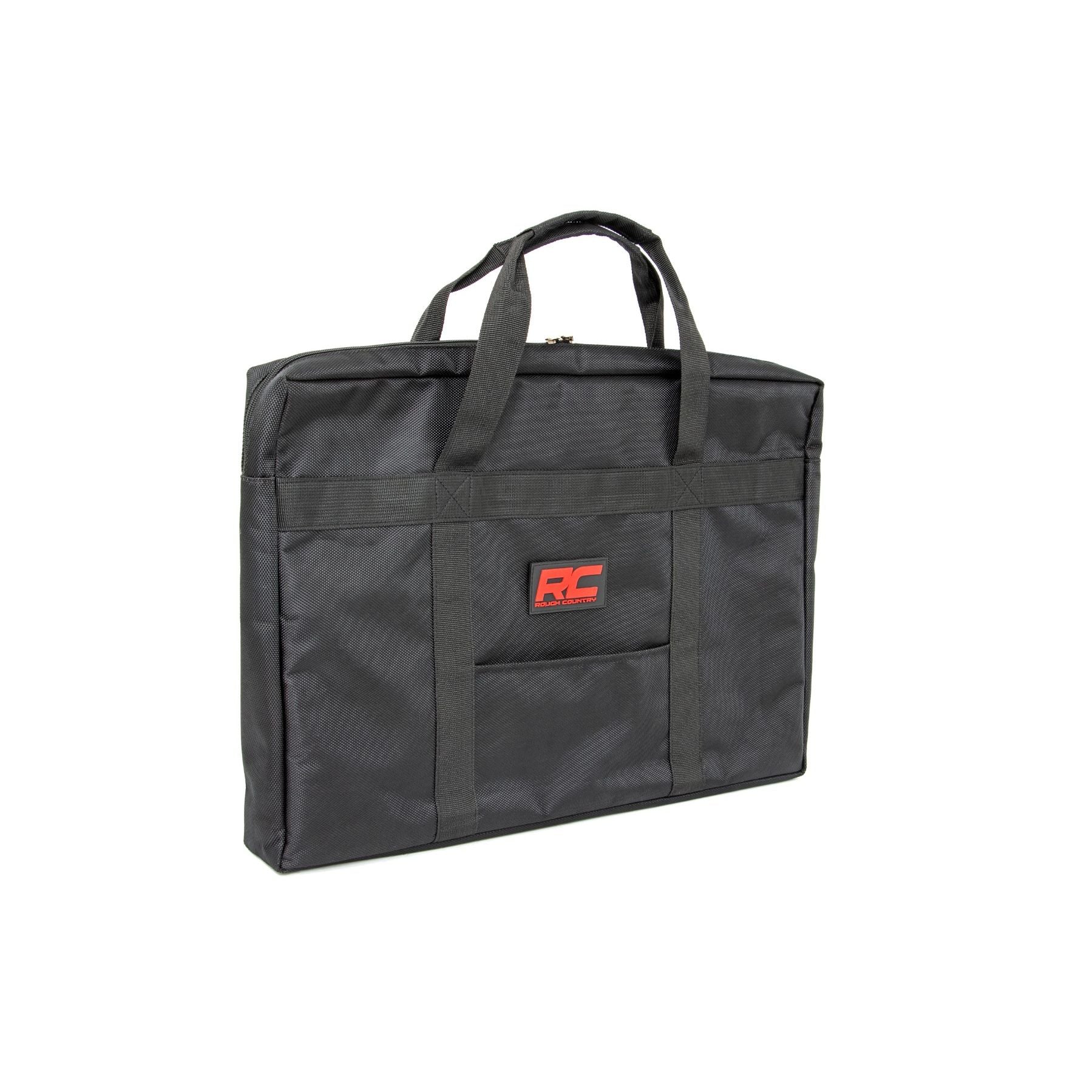 Portability and readiness are two major components of ensuring that you are prepared for your camping adventures. We've designed a carry bag for your favorite Rough Country Portable Fire Pit. This must have accessory allows you to store your dissembled Rough Country fire pit and load up quickly to head to your next destination. Rough Country's carry bag also features a front storage pocket to keep your smaller utensils in one centralized location! Having your essentials is a must, ensuring that you have them in the palm of your hand is the goal. nan For use with Rough Country's Portable Fire Pit.