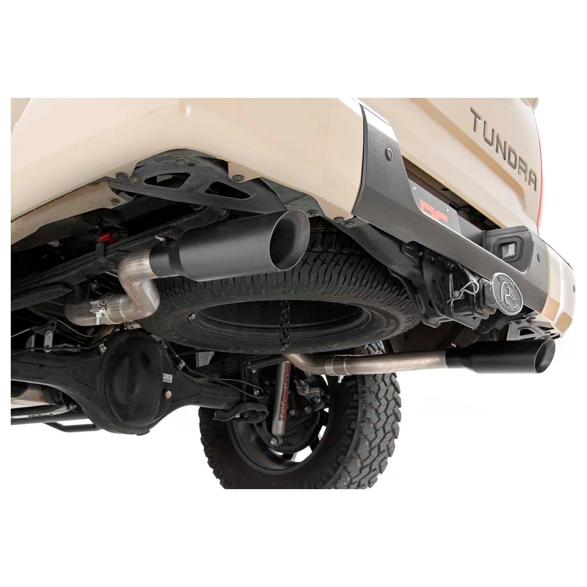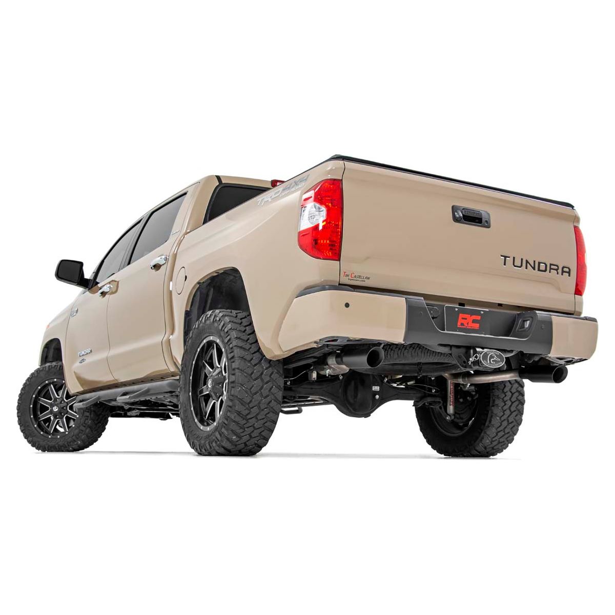 Give your truck an aggressive, throaty growl and killer good looks with Rough Country’s Dual Cat-Back Exhaust System for Toyota Tundra models. These durable exhaust systems are fine tuned to improve air flow and deliver and the perfect aftermarket exhaust note that will put a smile on your face every time you hit the gas.