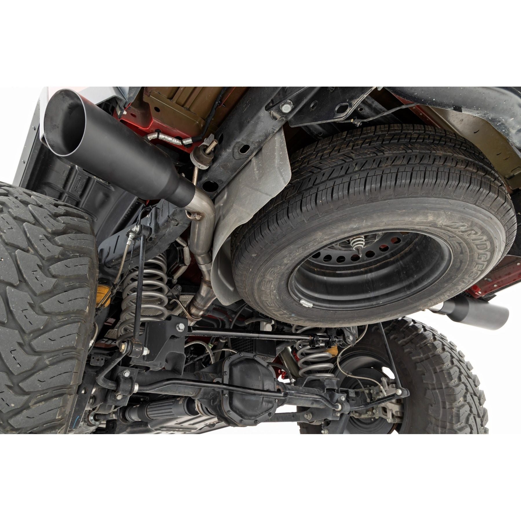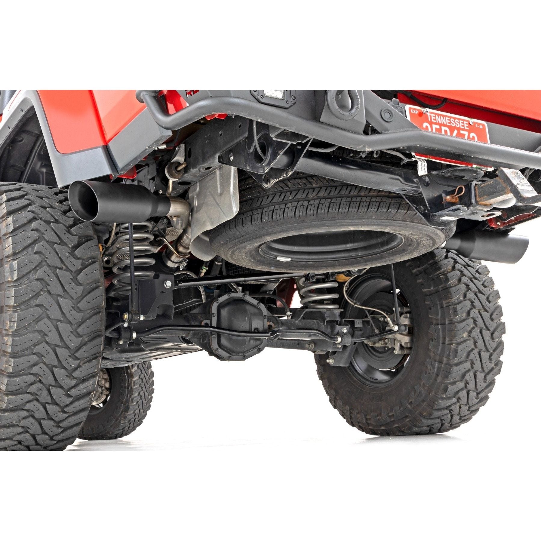 Aggressive Sound. Give your Jeep an aggressive, throaty growl and killer good looks with Rough Country’s Dual Cat-Back Exhaust System for Jeep Gladiator JT 3.6L models. These durable exhaust systems are fine-tuned to improve airflow and deliver the perfect aftermarket exhaust note that will put a smile on your face every time you hit the gas.
