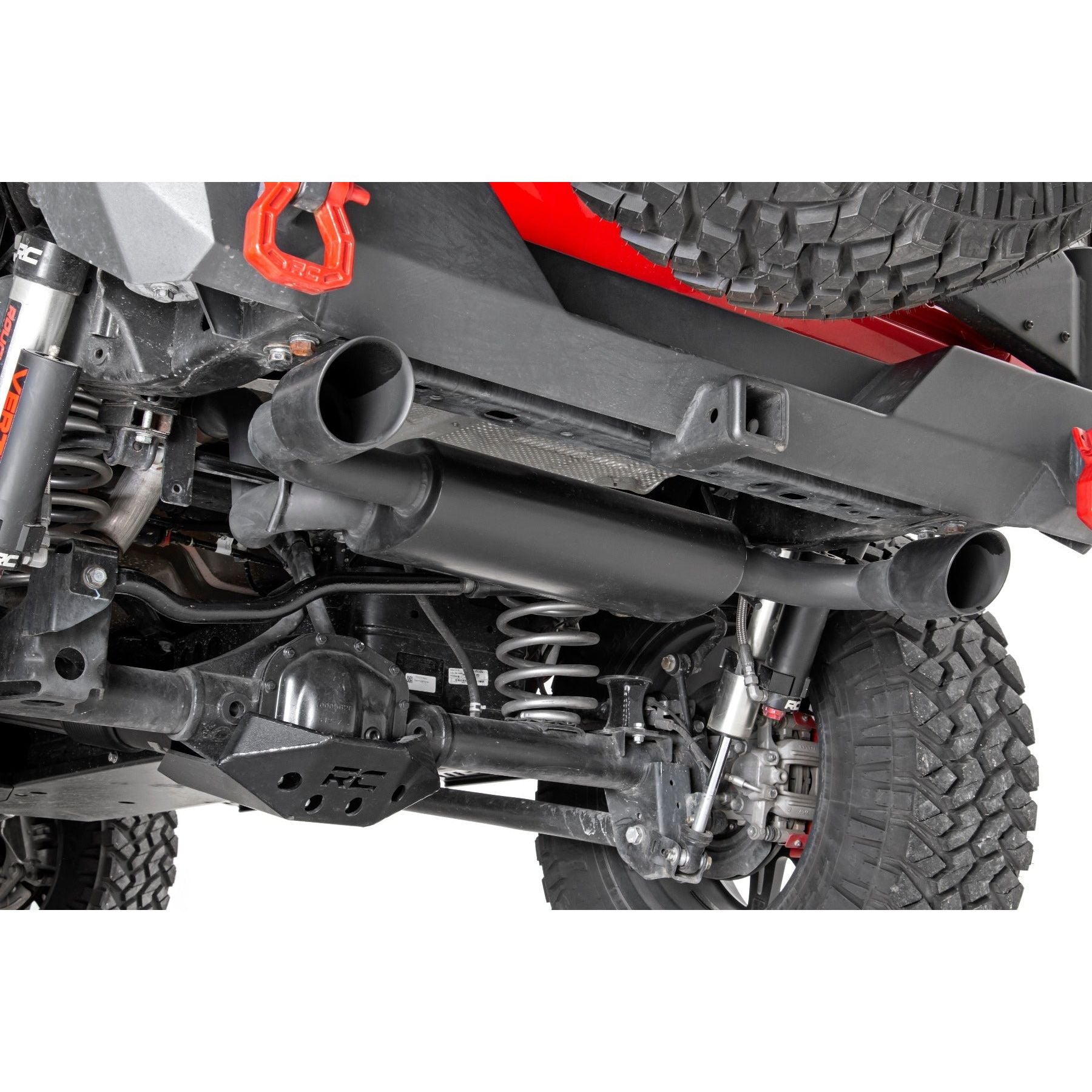 Overhaul the look and sound of your JL’s exhaust with Rough Country’s Dual-Outlet Performance Exhaust System. With an eye-catching matte black finish, these durable exhaust systems offer a throaty growl and menacing appearance that fits in perfectly with the aggressive look of a modified Jeep.