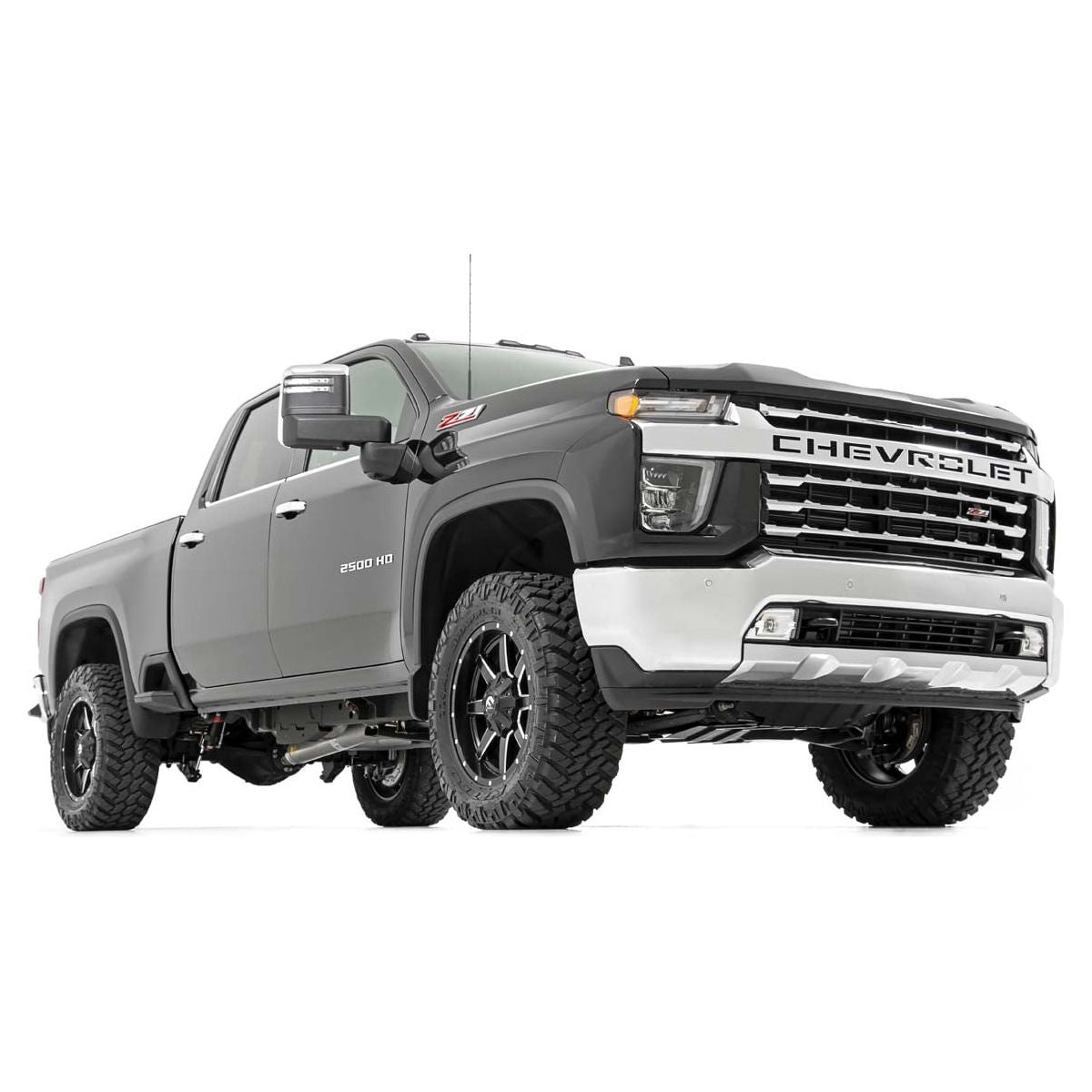 Does NOT fit models with Magnetic Ride Control I Rough Country's 3in Bolt-On Kit offers easy installation and aggressive good looks at an incredible value. Take your truck to new heights with this excellent option for GM HD Models. This kit features a set of high-quality, Forged Aluminum Upper Control Arms with durable rubber bushings. These arms are designed to promote a factory-like geometry by keeping the ball joint at optimum angles after lifting. This design allows for an improved, full range of motion from the ball-joint, with less stress, wear and tear. This kit also features a set of durable, forged torsion bar keys, offering uncompromising strength and rigidity over factory keys. A set of front and rear N3 Nitrogen-charged shocks are also included in the kit, giving your truck incredible ride-quality both on and off-road. Once installed, this kit gives your truck plenty of ride height for up to larger tires while offering a clean, level look from front to rear. This all-inclusive kit comes with everything you need, and installation is a piece of cake compared to other kits on the market! Featuring a 100% bolt-on installation process that requires zero cutting or drilling, this kit can give your truck a huge transformation while preserving the ability to return to stock if needed. Best of all this kit features Rough Country’s Lifetime Replacement Warranty!