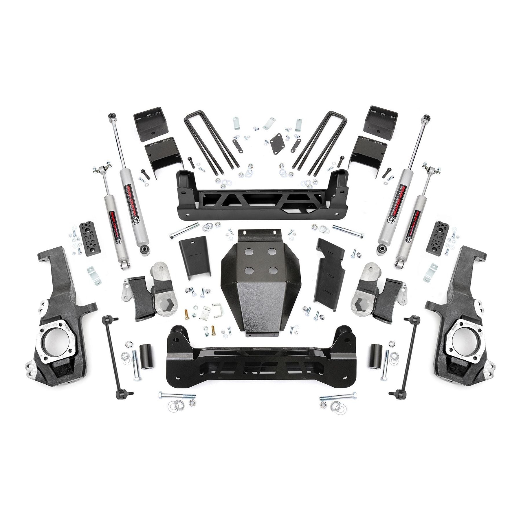 This kit also includes a set of front and rear crossmembers that are laser cut from durable US steel for a precise fit on your vehicle and feature an “RC” logo that displays prominently at the front of the vehicle. Each kit also features lifted knuckles, a beefy differential skid plate, and a set of Rough Country’s N3 Nitrogen-charged shock absorbers that provide an incredibly smooth, factory-like ride quality both on and off-road.