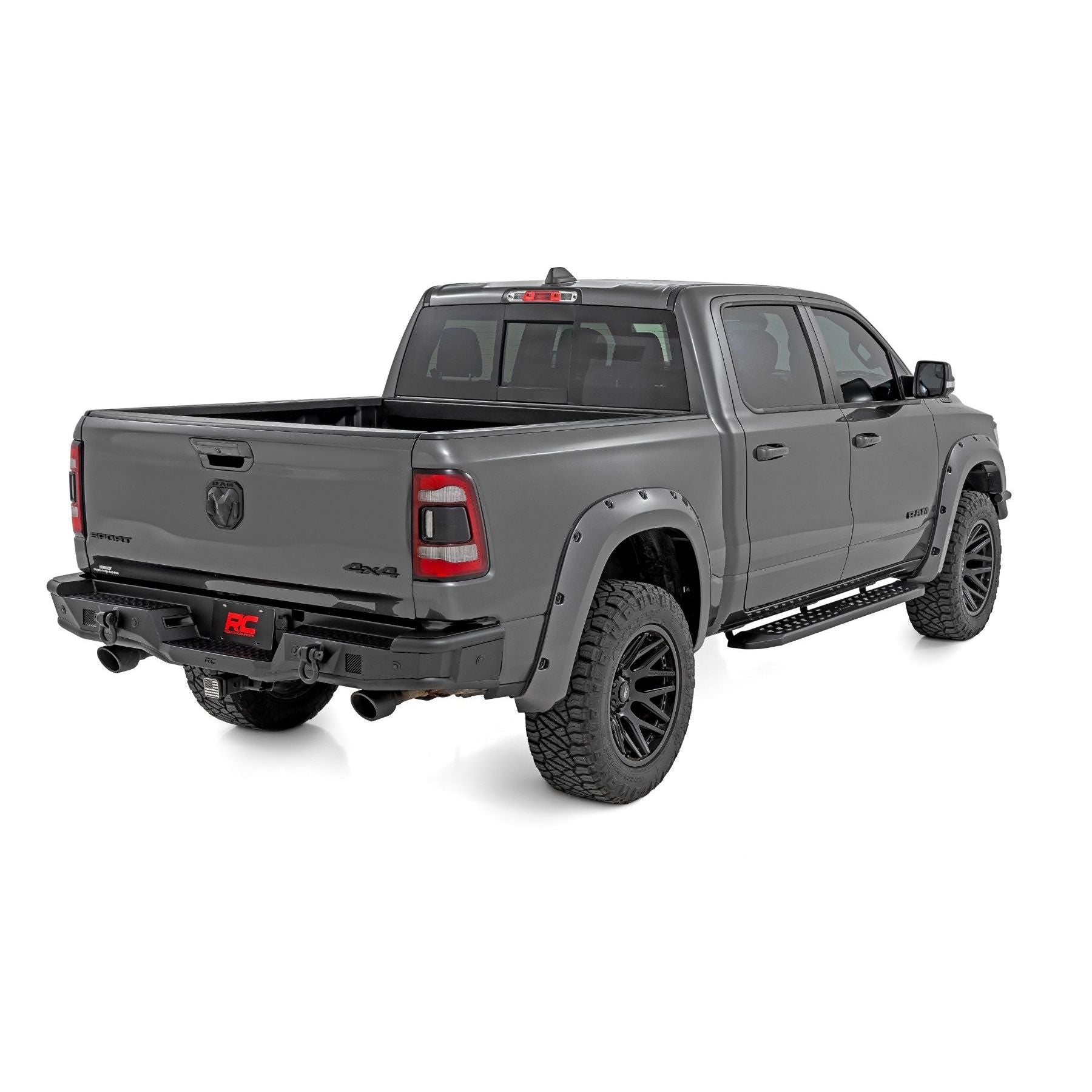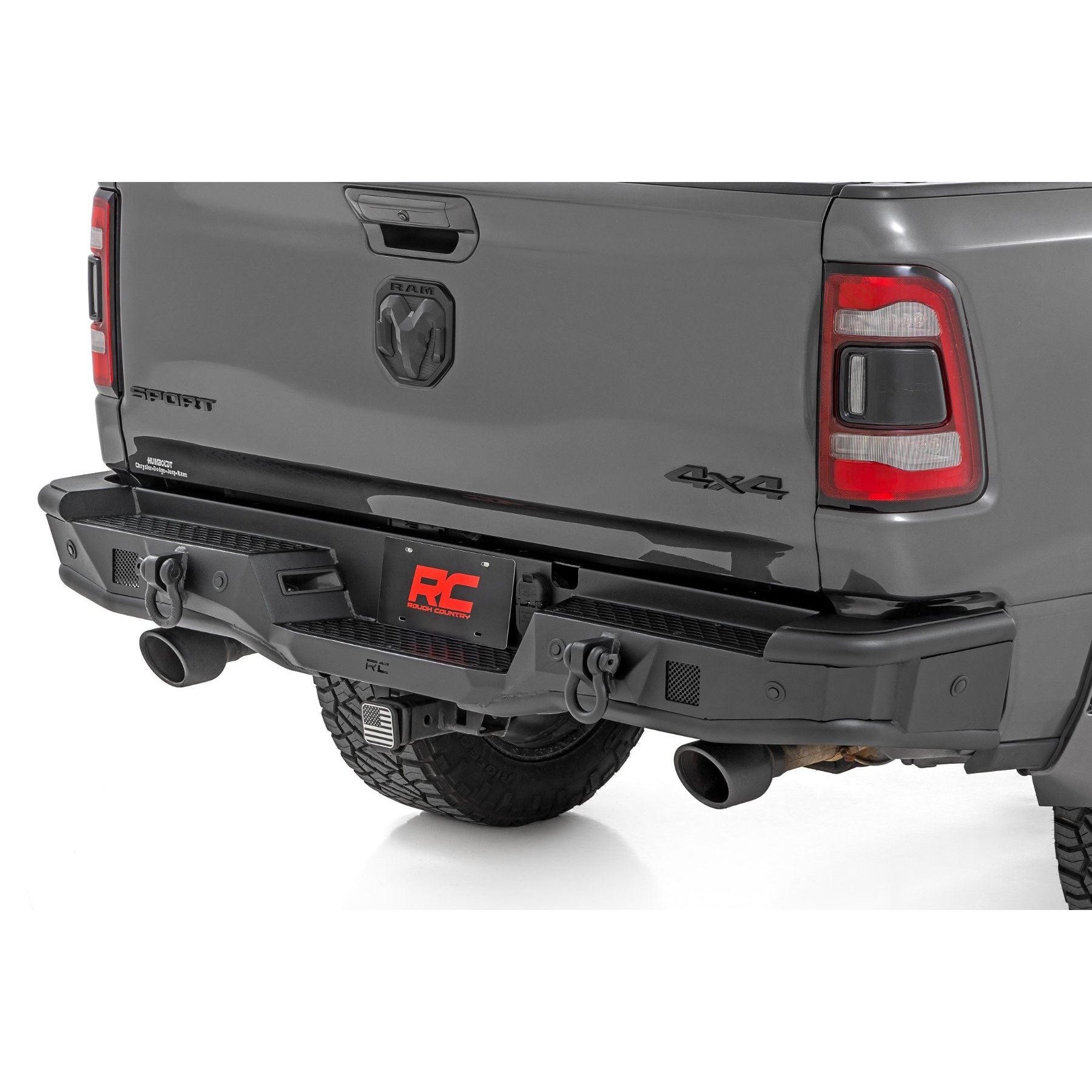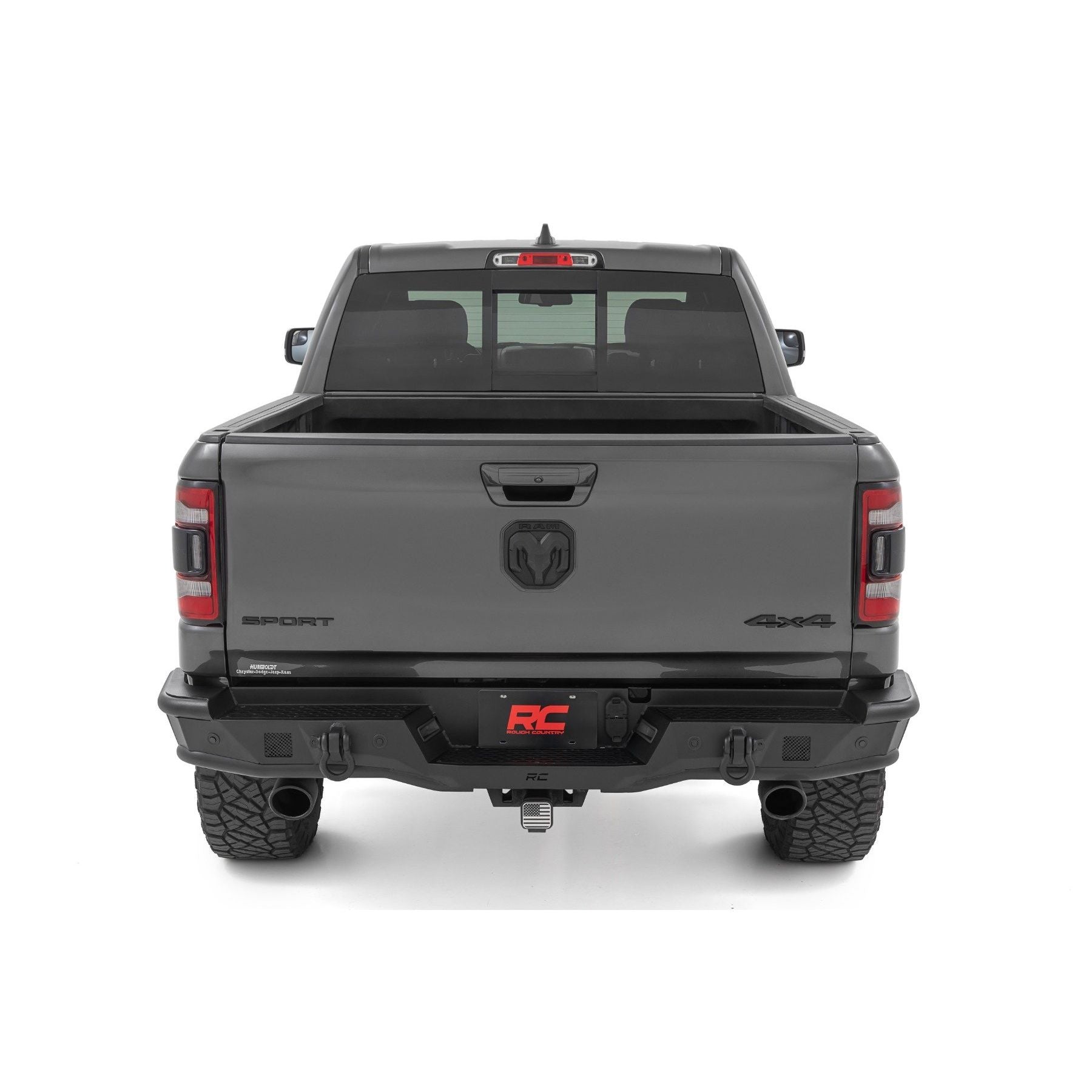 Rugged Rear-End Upgrade: Transform the rear of your fifth-generation Ram 1500 with Rough Country's Tubular Rear LED Bumper. This aggressive, high-clearance design not only elevates your truck's off-road appearance but also improves departure angles for trail-ready performance. Whether you're crawling rocky terrain or cruising city streets, this bumper delivers head-turning style and rock-solid protection.Engineered for Strength and Function: Crafted from heavy-duty steel and finished in a corrosion-resistant, textured black powder coat, this bumper is built to handle whatever the road or trail throws your way. Its bold tubular design complements your Ram's body lines while providing dependable impact resistance and long-lasting durability.Fully Compatible and Sensor-Ready: This rear bumper is designed to retain your factory receiver hitch for full towing functionality and accommodates factory backup and proximity sensors. For Ram 1500 models not equipped with sensors, mesh block-off plates are included to maintain a clean, finished look.Light-Ready Design: Need extra visibility? This bumper includes provisions to mount Rough Country's 2-inch LED light cubes, giving you the ability to add powerful rear-facing illumination for trail spotting, worksite visibility, or night-time reversing.Hassle-Free Installation: No cutting, welding, or drilling required. This bumper features a 100% bolt-on installation using standard tools and can be completed in just 3-4 hours from the comfort of your garage.Backed by a Limited Lifetime Warranty: Rough Country backs this rear bumper with a limited lifetime replacement warranty against structural and workmanship defects, giving you confidence on every adventure. Simple, Bolt-On Installation: Installs easily with basic tools, no cutting or welding required.
