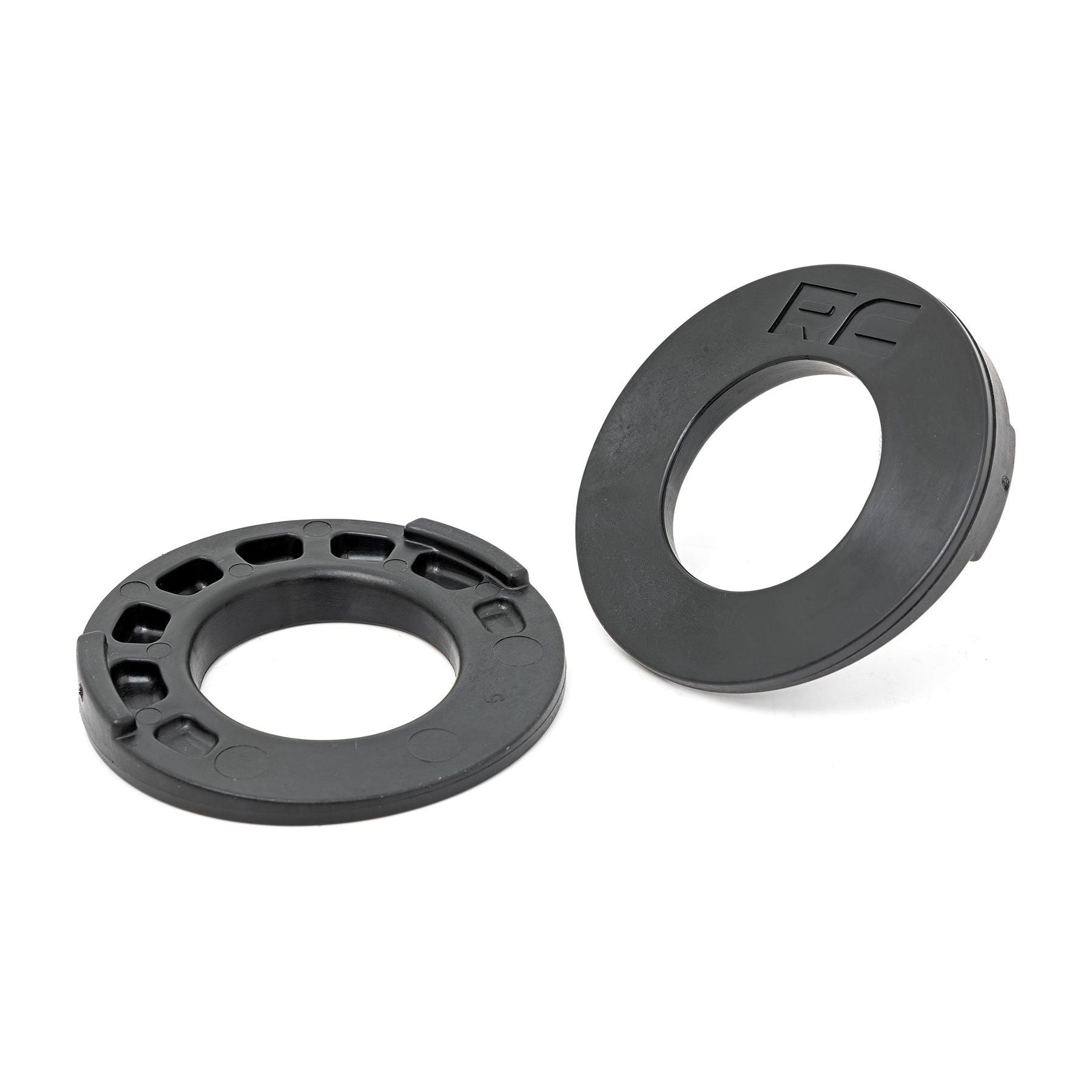 Run your rear coils at the right angle; these shims correct the rear coil angle of a lifted JK by 10 degrees, thus putting them at the optimum angle for on and off-road applications. A bowed coil spring can rub against the track-bar bracket or other components. Utilizing a correction shim keeps the coil straight, thus prolonging the life of the coil itself as well as giving a more pleasurable driving experience. Rough Country now offers these shims pre-included in the popular Jeep JK 3.5in, 4in, 4in X-Series, and 6in X-series kits. These correction shims may also be purchased separately, and are easy to install on existing equipment. Easy bolt-on installation