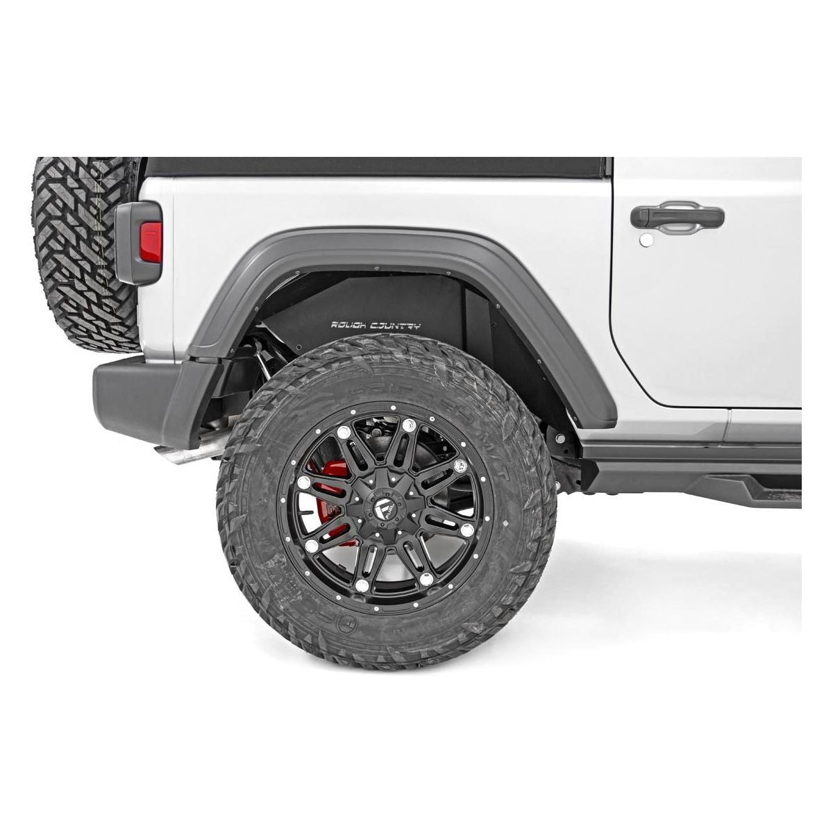 If using stock wheels a wheel spacer MUST be used for adequate clearance. I Clean up the look of your inner fenders when using aftermarket flares with Rough Country’s JL Front and Rear Inner Fender Liners. These eye-catching inner fender upgrades help protect sensitive areas from dust, mud, and debris, and can be easily installed in no-time flat!