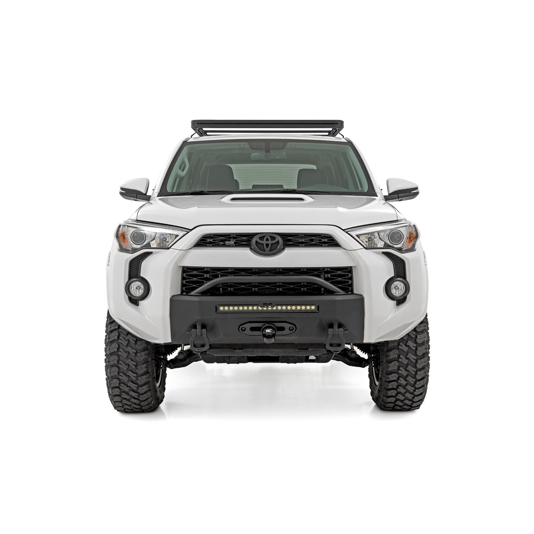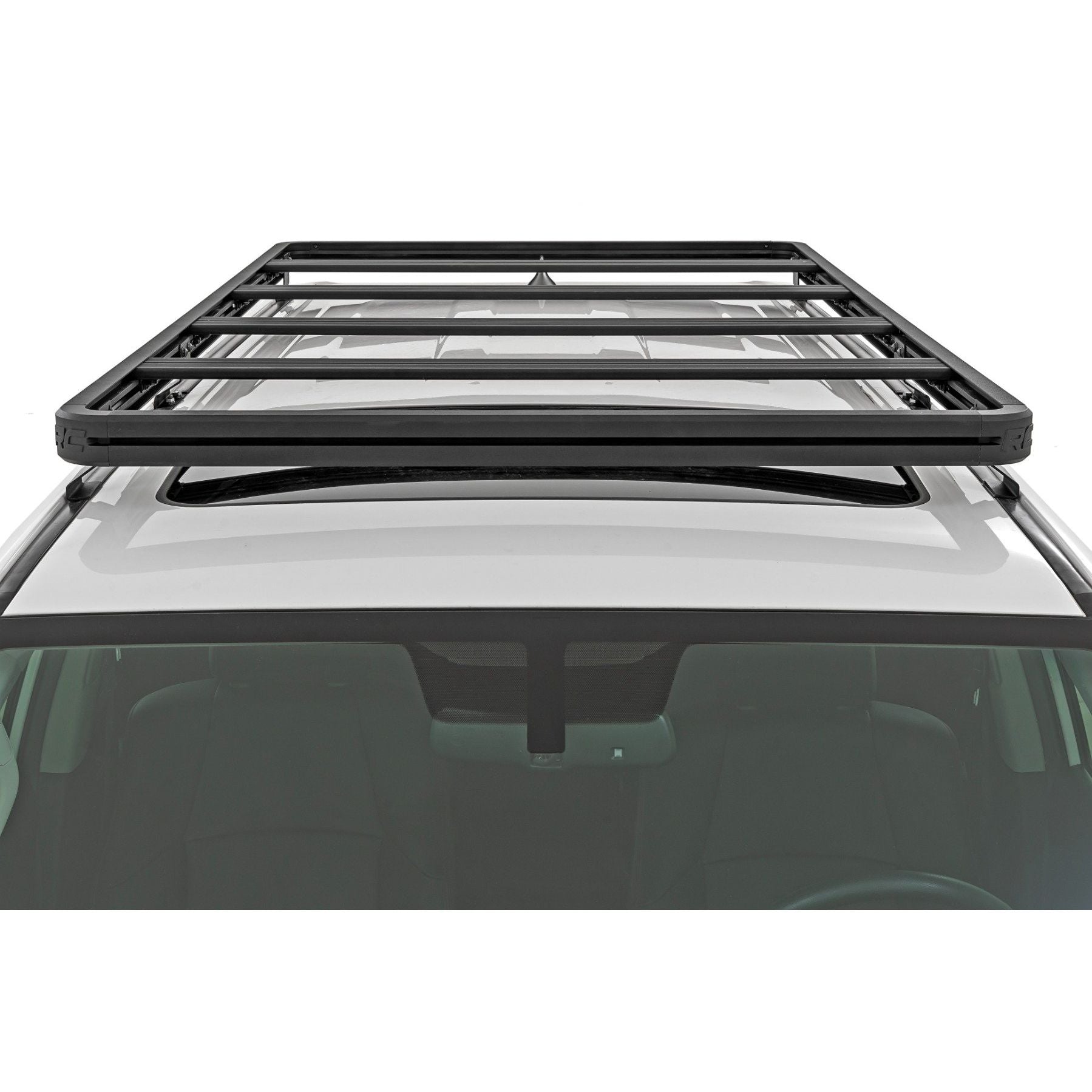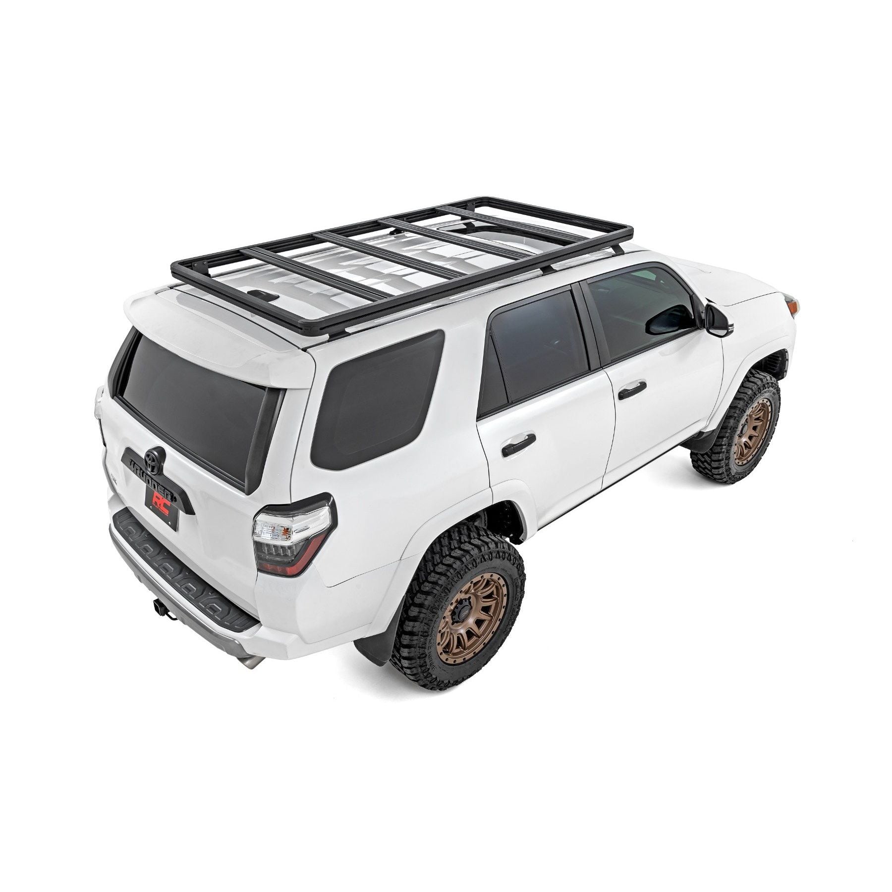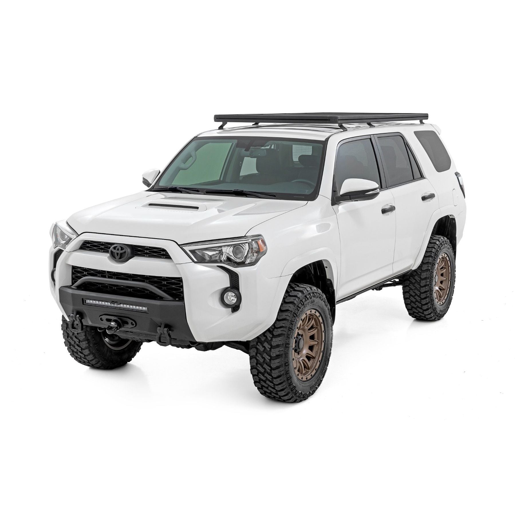 Maximize Your 4Runner's Utility: Outfit your Toyota 4Runner for the trail, the job site, or the weekend adventure with Rough Country's premium Roof Rack. This rack blends lightweight strength with versatile functionality to handle anything you throw its way.Built to Endure: Crafted from powder-coated aluminum, this rack delivers rust-resistant durability without weighing you down. The rugged all-weather finish shrugs off UV rays, rain, and road debris for lasting performance.Engineered for Versatility: With a fully integrated slotted T-rail system, you get endless mounting options for lights, awnings, jacks, recovery boards, or storage boxes-customize your setup exactly how you need it.Adaptable Cross Bar System: Whether you're hauling cargo or planning an overland expedition, the adjustable cross bars can be flipped or repositioned to create a basket-style platform or to fit specialized gear.Strength That Holds Up: Rated for a 600 lb static load and 300 lb dynamic load, this rack easily supports rooftop tents, heavy cargo, and everything in between.Spacious and Trail-Ready: With dimensions measuring 46-1/4" wide by 91" long, you'll have plenty of room to secure your gear and hit the road with confidence. Durable Aluminum Construction: Built from powder-coated aluminum for lightweight strength and long-lasting corrosion resistance.
