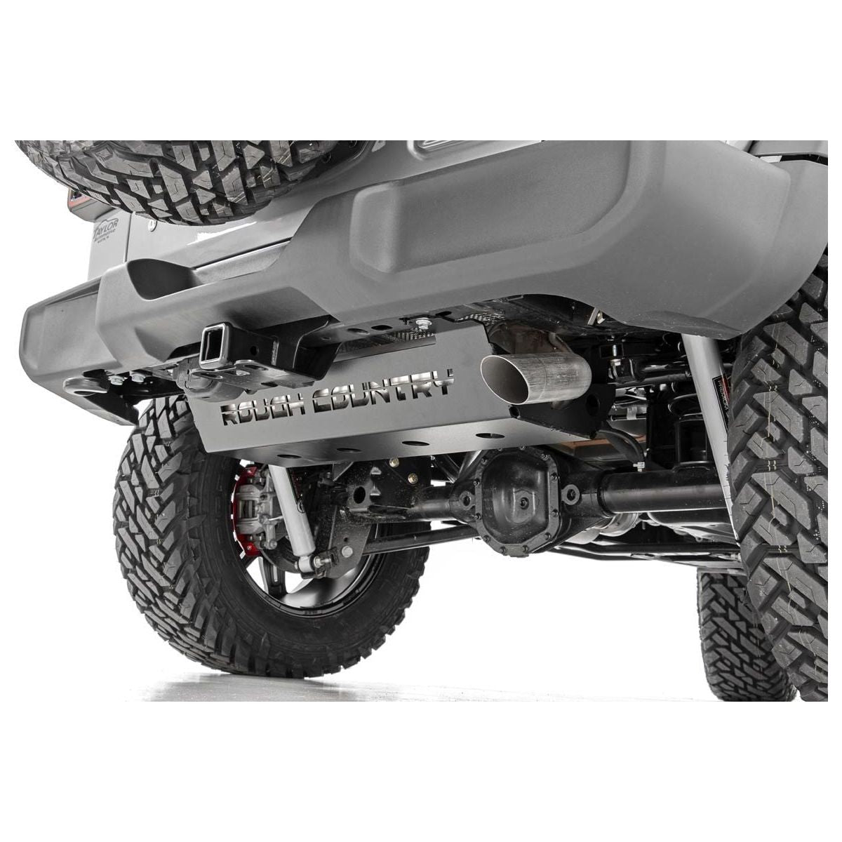 Does NOT work with SKU: 96003. I Protect your JL’s Muffler from off-road hazards with Rough Country’s Muffler Skid Plate. This durable, 3/16 plate steel skid helps to protect your muffler from rocks, debris and anything else you can throw at it!