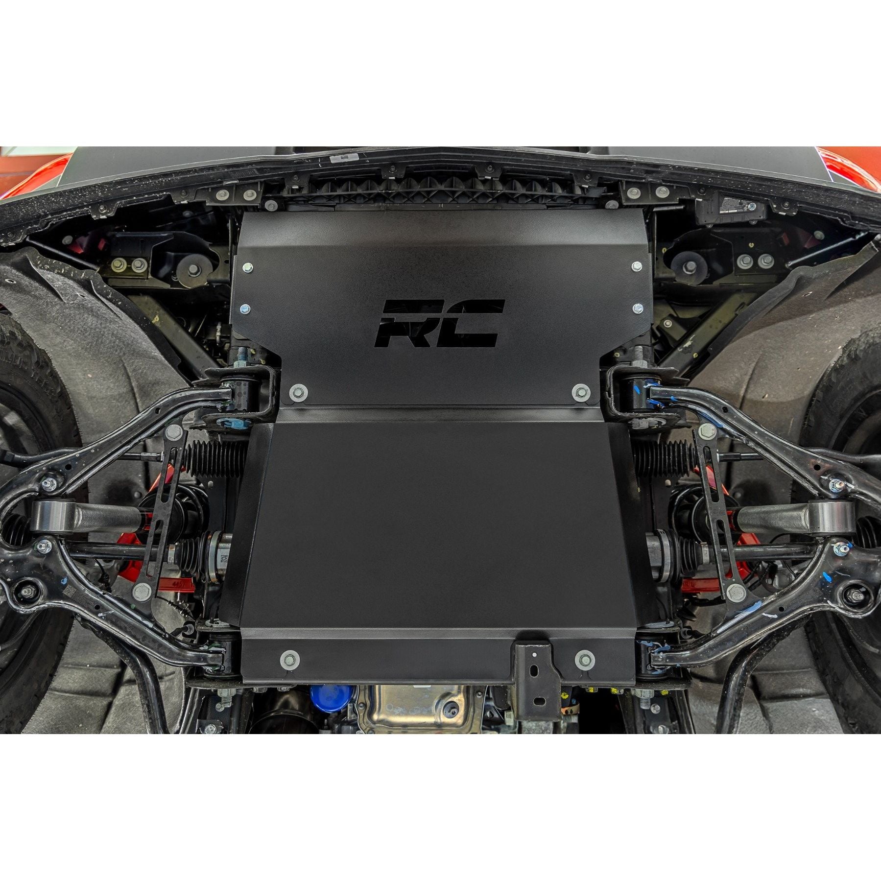 Upgrade Your Protection: Give your fifth-generation Chevy Silverado 1500 the armor it deserves with Rough Country's Heavy-Duty Skid Plate Kit. Built from rugged 14-gauge steel, this upgrade is engineered to take the hits your factory plastic skid plates can't handle, keeping your vital components safe from rocks, debris, and trail hazards.Durability That Lasts: Finished in a premium gloss black powder coat, these skid plates deliver superior corrosion resistance and a sleek look that stands up to the toughest conditions. Unlike plastic, which can crack or warp under impact, Rough Country's steel design ensures long-term reliability and protection in any environment.Complete Coverage Where It Counts: This kit includes a robust differential skid plate to shield one of your truck's most vulnerable components, giving you confidence on rough trails and job sites alike. Whether you're off-roading or tackling daily commutes, you'll benefit from unmatched durability, improved underbody protection, and peace of mind knowing your Silverado is ready for anything. Heavy-Duty 14-Gauge Steel Construction: Built tough to withstand harsh off-road conditions and protect vital components from damage.