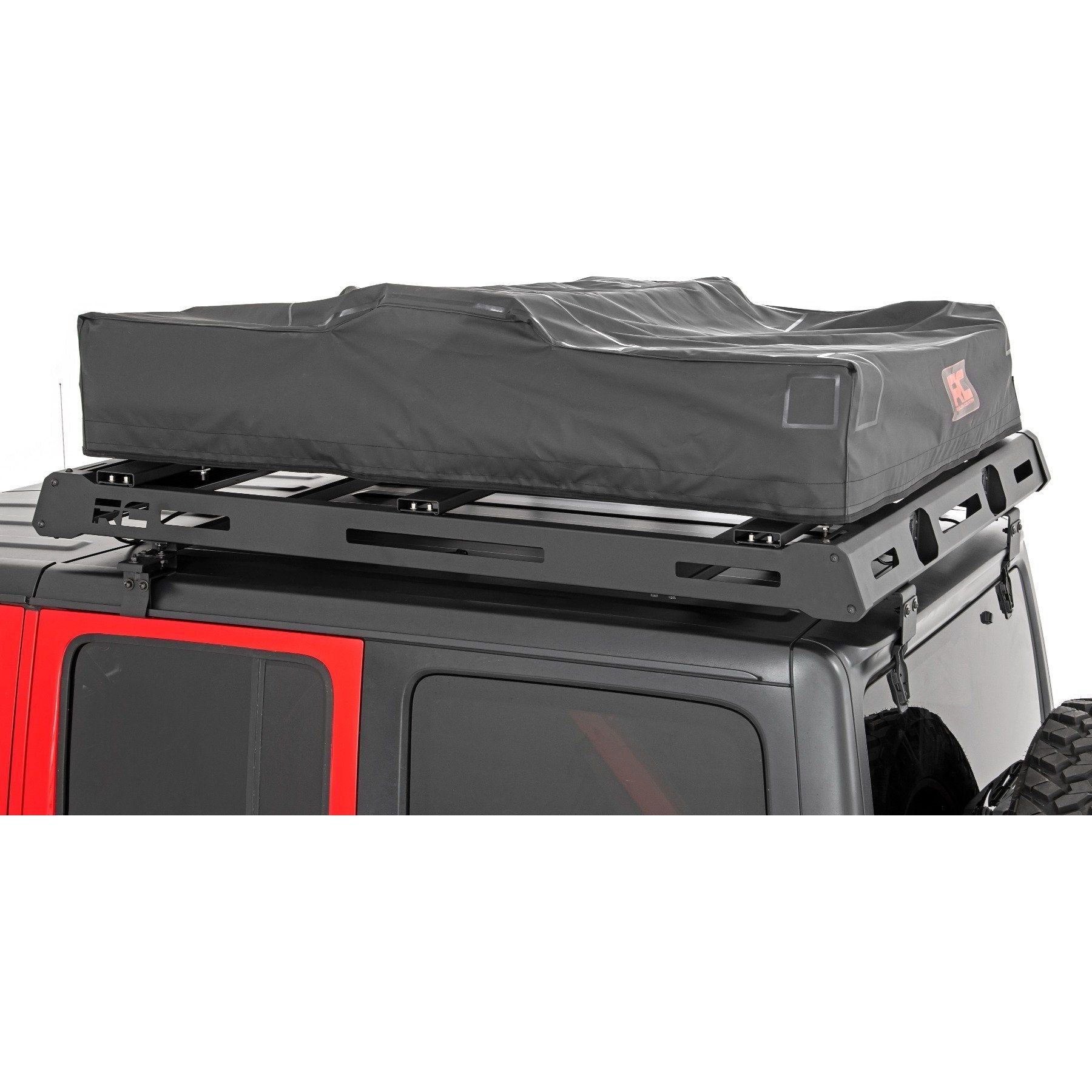 Rough Country’s Roof Top Tent | Rack Mount | 12 Volt Accessory & LED Light Kit is the ultimate accessory for any adventure. This high grade tent body features a 600D Oxford Rip Stop fabric with UV protection as well as a light weight 420D Oxford Rip Stop fabric on the rain fly extension and boasts a durable aluminum frame with mounting hardware to mount to your roof system or rack. Includes aluminized ladder to allow easy access when entering and exiting the tent. When not in use the included durable cover with RC logo protects the tent assembly for travel to and from your favorite outdoor location.