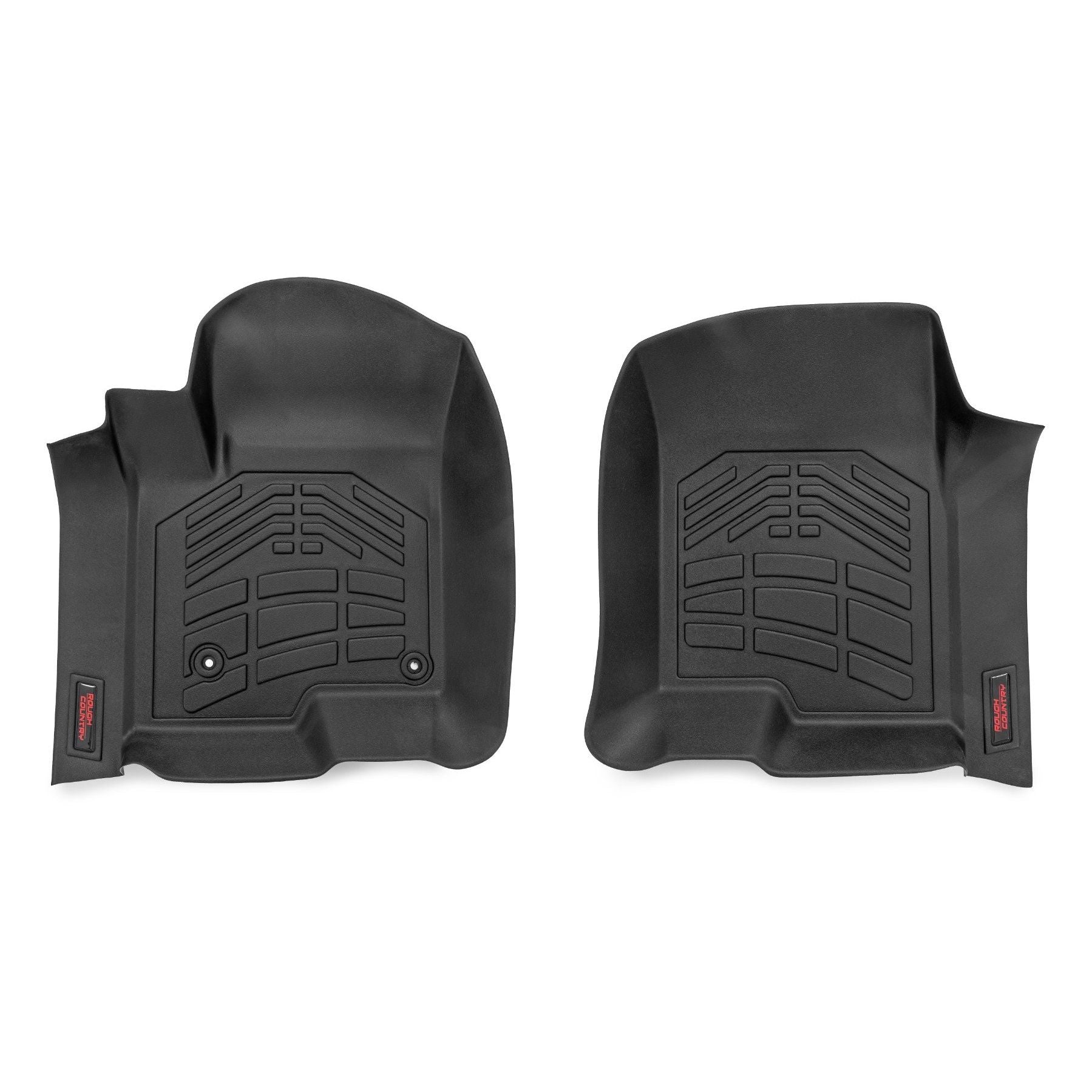 With Rough Country Sure Fit Floor Mats you get the perfect combination of style, durability, and peace of mind, knowing your vehicle's floors are protected no matter where the road takes you. Life is messy, but your truck doesn't have to be. Manufactured from strong but flexible Thermoplastic Rubber.