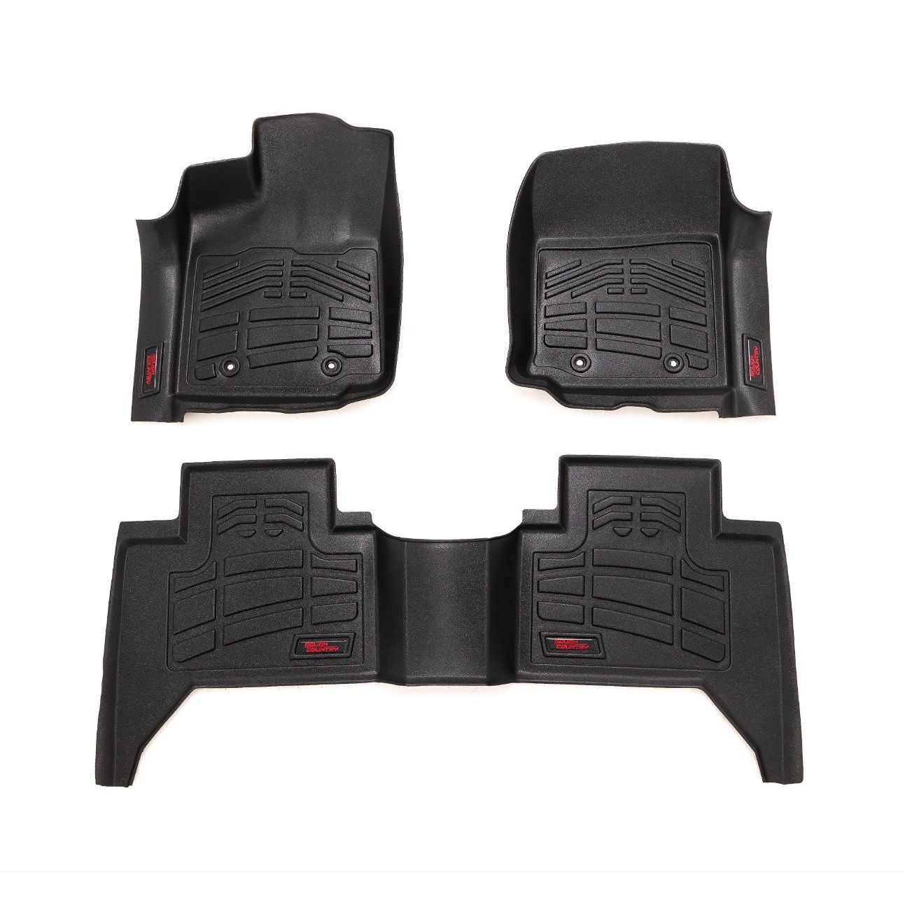 With Rough Country Sure Fit Floor Mats you get the perfect combination of style, durability, and peace of mind, knowing your vehicle's floors are protected no matter where the road takes you. Life is messy, but your truck doesn't have to be. Manufactured from strong but flexible Thermoplastic Rubber.