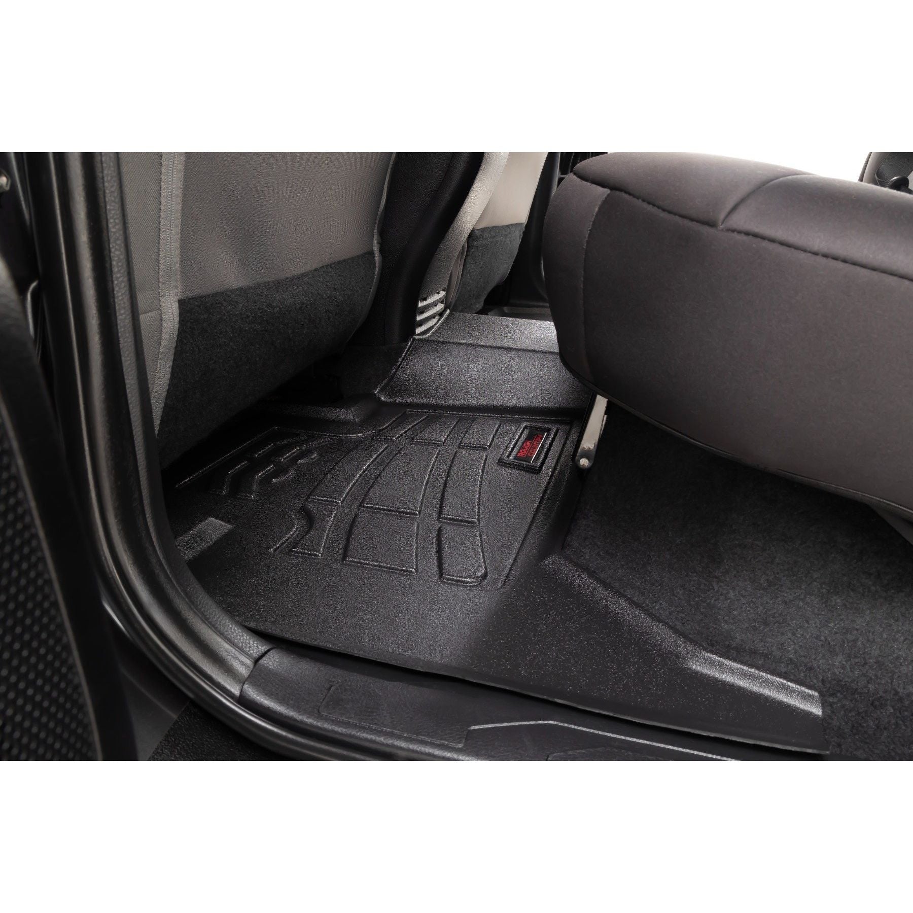 Keeping your ride spotless isn't always easy, especially with the unpredictable weather and accidental spills. Now you can ditch the dirt and keep your ride clean with Rough Country Sure-Fit Floor Mats!