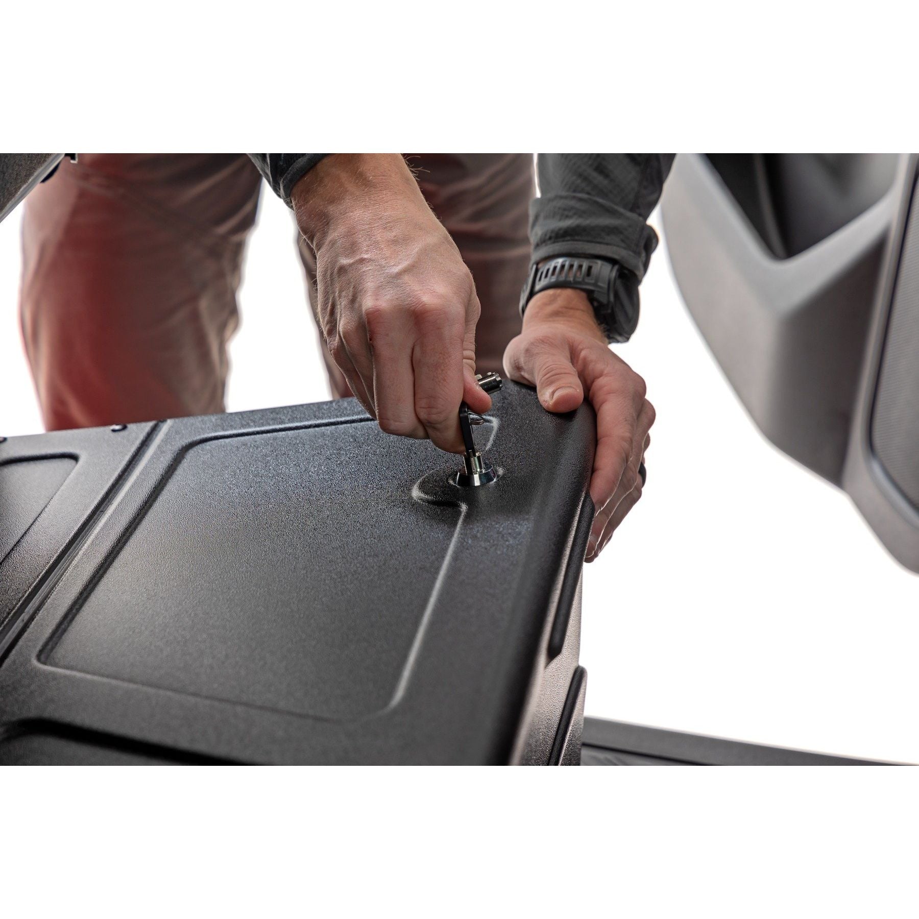 Clean up the contents of your cab with Rough Country Custom-Fit Under Seat Storage Compartment. These handy underseat truck storage compartments offer an easy way to store your gear with a custom, contoured look that blends in seamlessly with your vehicle factory design. Keep your tools, gear, and other odds and ends organized and stowed away while conveniently stowed away under the rear seats.