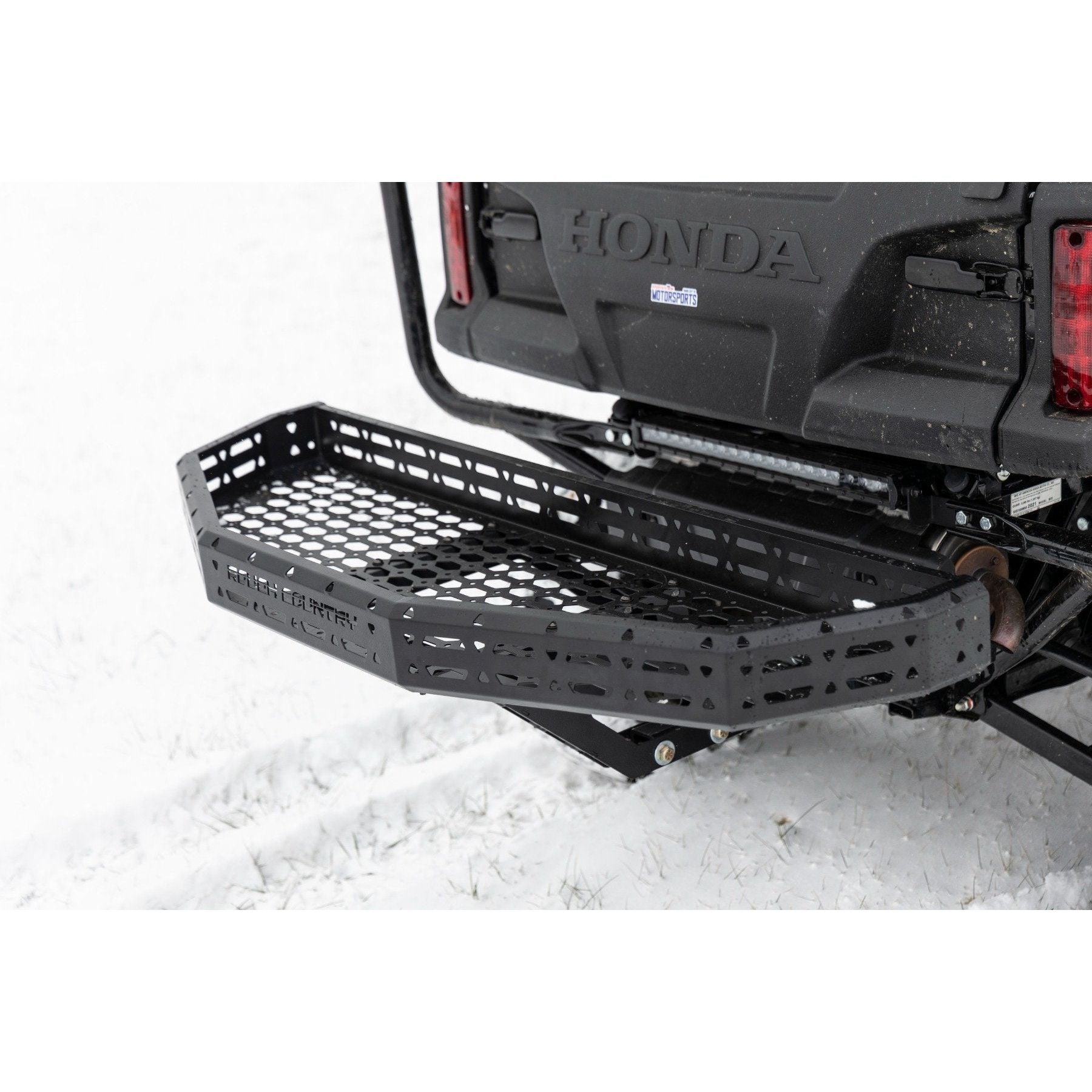 Maximum Cargo Space! Increase your cargo carrying capacity with Rough Country's Rear Hitch Cargo Rack. Free up space inside the vehicle by attaching this rack to your hitch, and then load up! You can use it to carry that extra gear you need for camping, hunting trips, or when you're headed out on your next Overlanding adventure. The unique Molle pattern design offers several tie-down locations to keep your cargo secure – whether downhill through the trails or up into the backcountry.