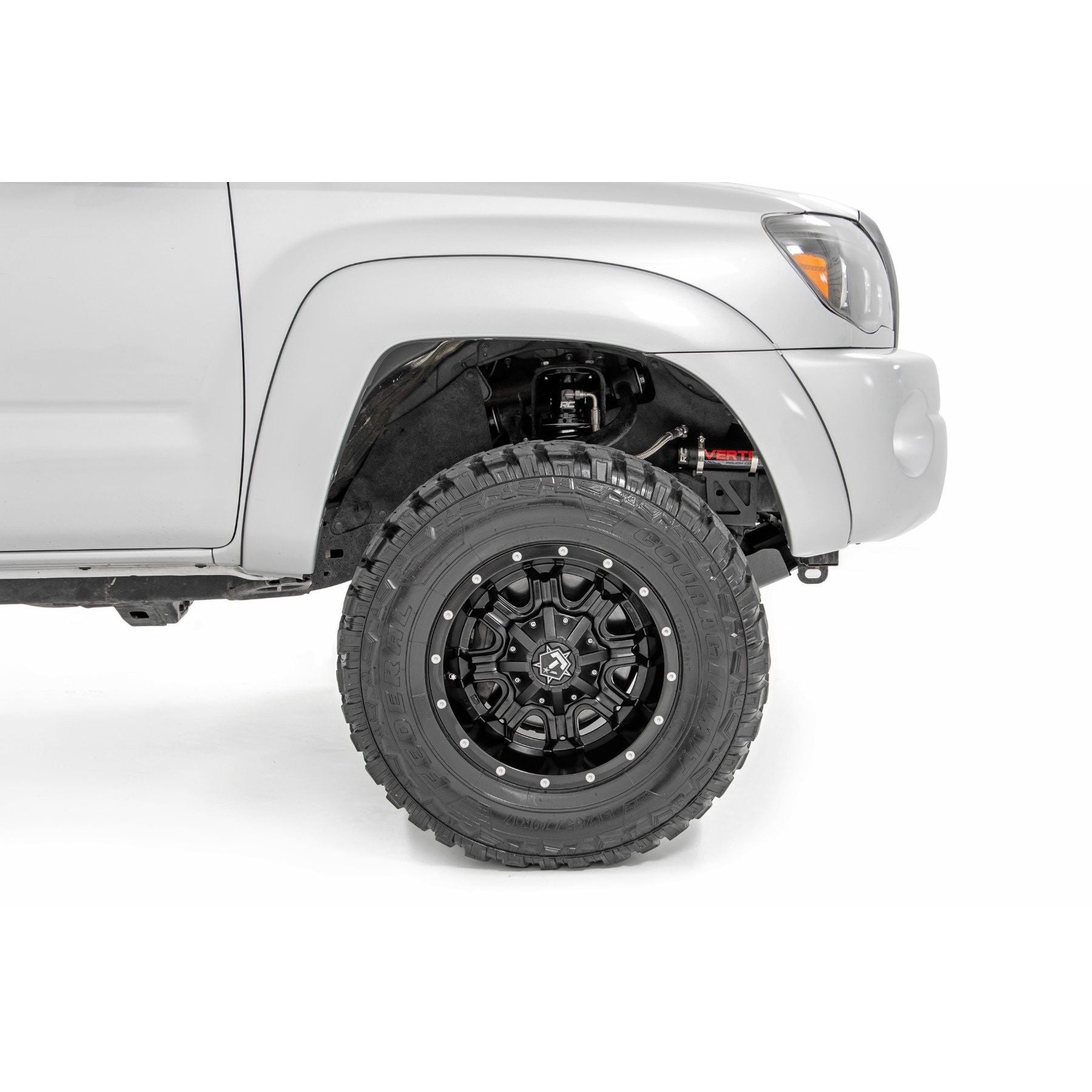 Unrivaled Performance: Unmatched Ride Quality. Experience the pinnacle of off-road control with Rough Country's 2.5 Vertex 8-Stage Adjustable Reservoir Coilovers - precision-engineered to dominate any terrain while delivering a smooth, customizable ride.Dial In Your Ride: With an 8-stage adjustable damping system, you have complete control over your suspension. Whether you're cruising city streets or tackling extreme off-road challenges, a simple turn of the dial fine-tunes your ride for comfort or aggressive performance.Built for the Extreme: Featuring a monotube design with an external remote reservoir, these nitrogen-charged coilovers increase oil capacity and damping sensitivity for superior heat dissipation and fade resistance. A massive 2.5-inch piston and 22mm chrome-hardened piston rod ensure maximum durability and performance in the toughest conditions.Engineered for Durability: A 3-stage seal system prevents dirt, debris, and fluid leakage, while the honed steel body and heat-treated alloy bearing extend longevity. The zinc-plated finish with a double clear coat and unbeatable salt spray resistance (over 400 hours) provide exceptional corrosion protection.Premium Design: These coilovers don't just perform - they turn heads. Featuring CNC-machined billet aluminum accents, a laser-etched RC logo, and premium "Vertex" decals, they combine high-end aesthetics with rugged reliability. They also feature a durable braided steel reservoir line and a laser-etched bracket system, ensuring a sleek, professional finish.Backed by Confidence: Covered by Rough Country's 3-year manufacturer's warranty, these coilovers offer long-term reliability and peace of mind for every adventure.Upgrade your ride today with Rough Country's 2.5 Vertex Coilovers - because performance, durability, and style should never be compromised. Complete Front Coilover Set: Includes both driver and passenger side for balanced performance and precise handling.