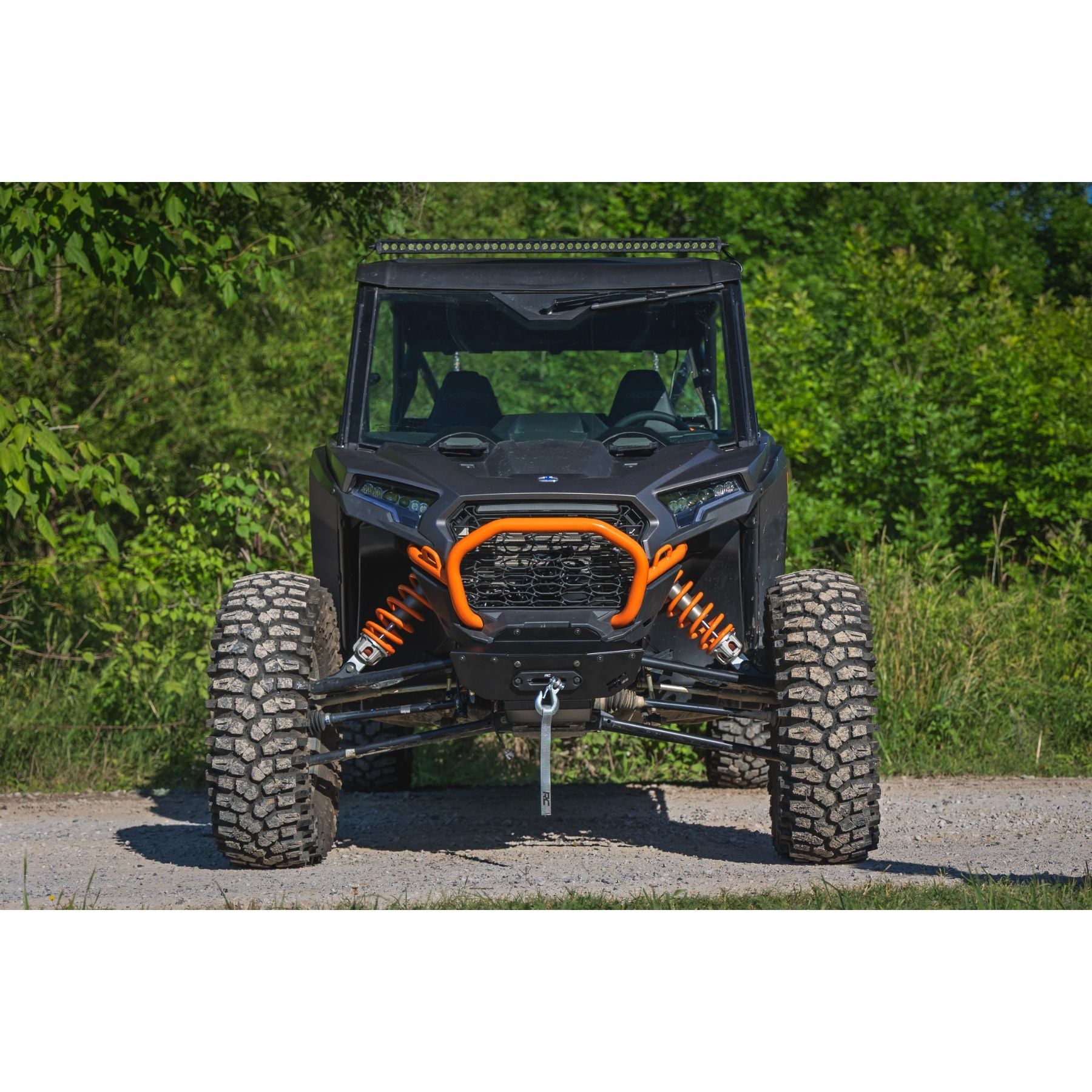 Reliable Recovery Power: Be prepared for whatever the trail throws at you with Rough Country's Winch Mount for the Polaris RZR XP 1000. Engineered for superior functionality, this must-have upgrade equips your UTV with dependable recovery capabilities, giving you the confidence to tackle tough terrain and unexpected obstacles. The 100% bolt-on design ensures a quick, secure installation with no cutting or trimming required.Built to Take a Beating: Constructed from ultra-durable 1/4-inch and 7-gauge steel, this mount is built to perform under pressure. Its black powder coat finish adds long-lasting corrosion resistance and a rugged, aggressive look that holds up against the elements. Designed to accept both 4500 LB and 6500 LB Rough Country synthetic rope winches, this mount gives you powerful options for any recovery need. Whether you're climbing rock trails or buried in the mud, this setup delivers the strength and reliability you demand.Easy Installation: Guaranteed Durability. With a 100% bolt-on fit and all necessary hardware included, installation is simple and hassle-free no cutting or trimming required. Plus, it's backed by Rough Country's limited lifetime replacement warranty, protecting your investment from structural and workmanship defects. Ride with confidence knowing your gear is covered when it matters most. Easy Bolt-On Installation: Get your winch mounted quickly and securely without complicated modifications.
