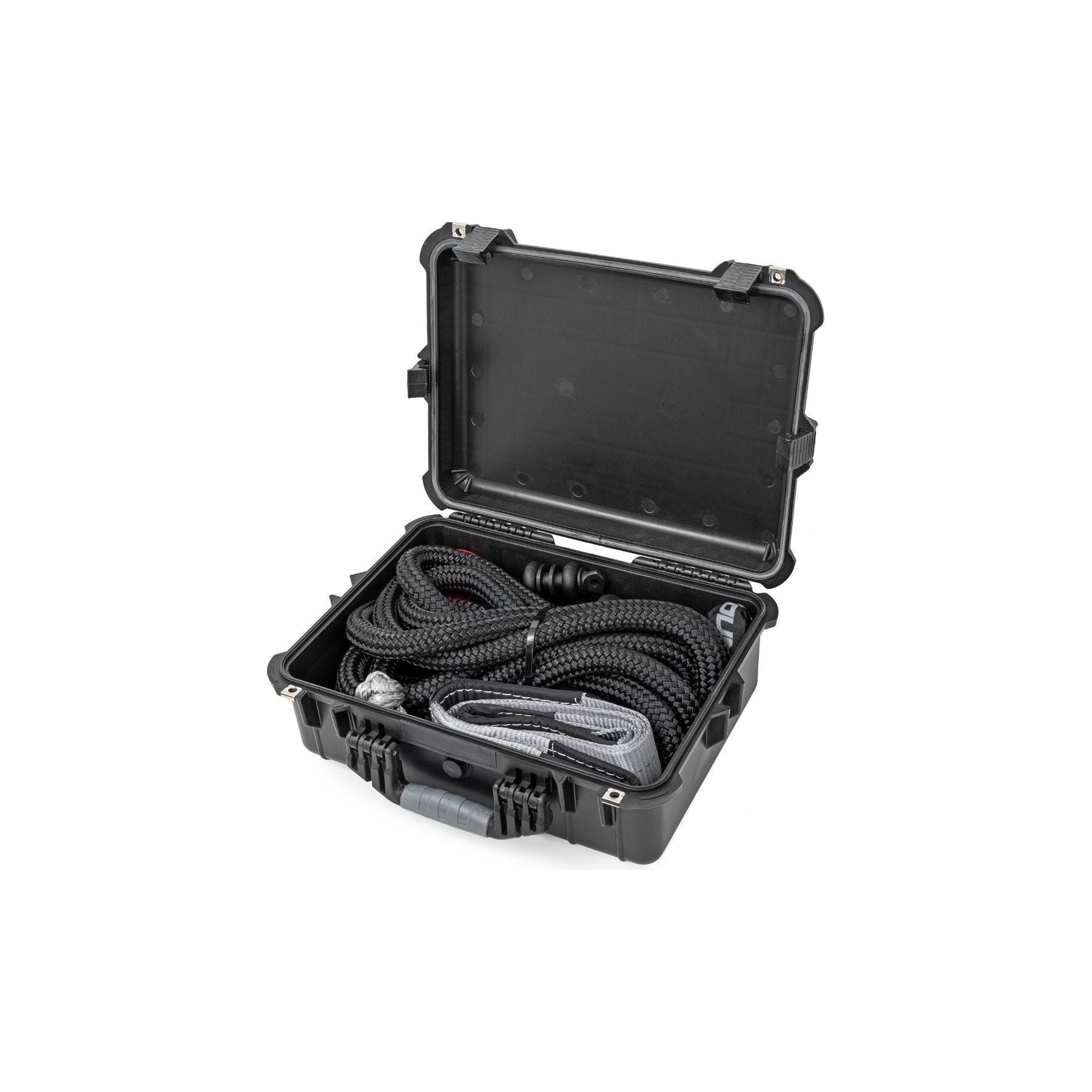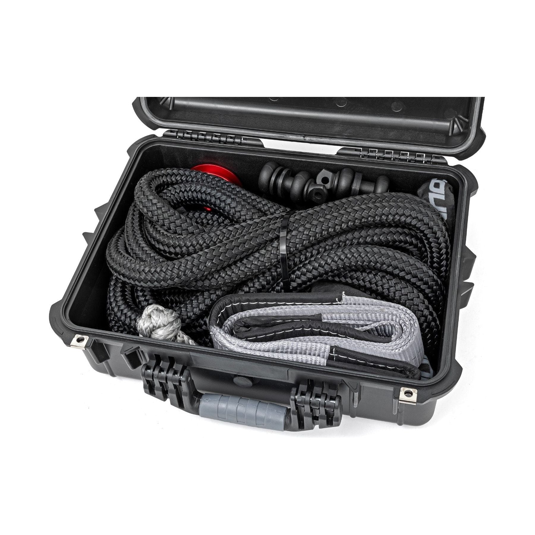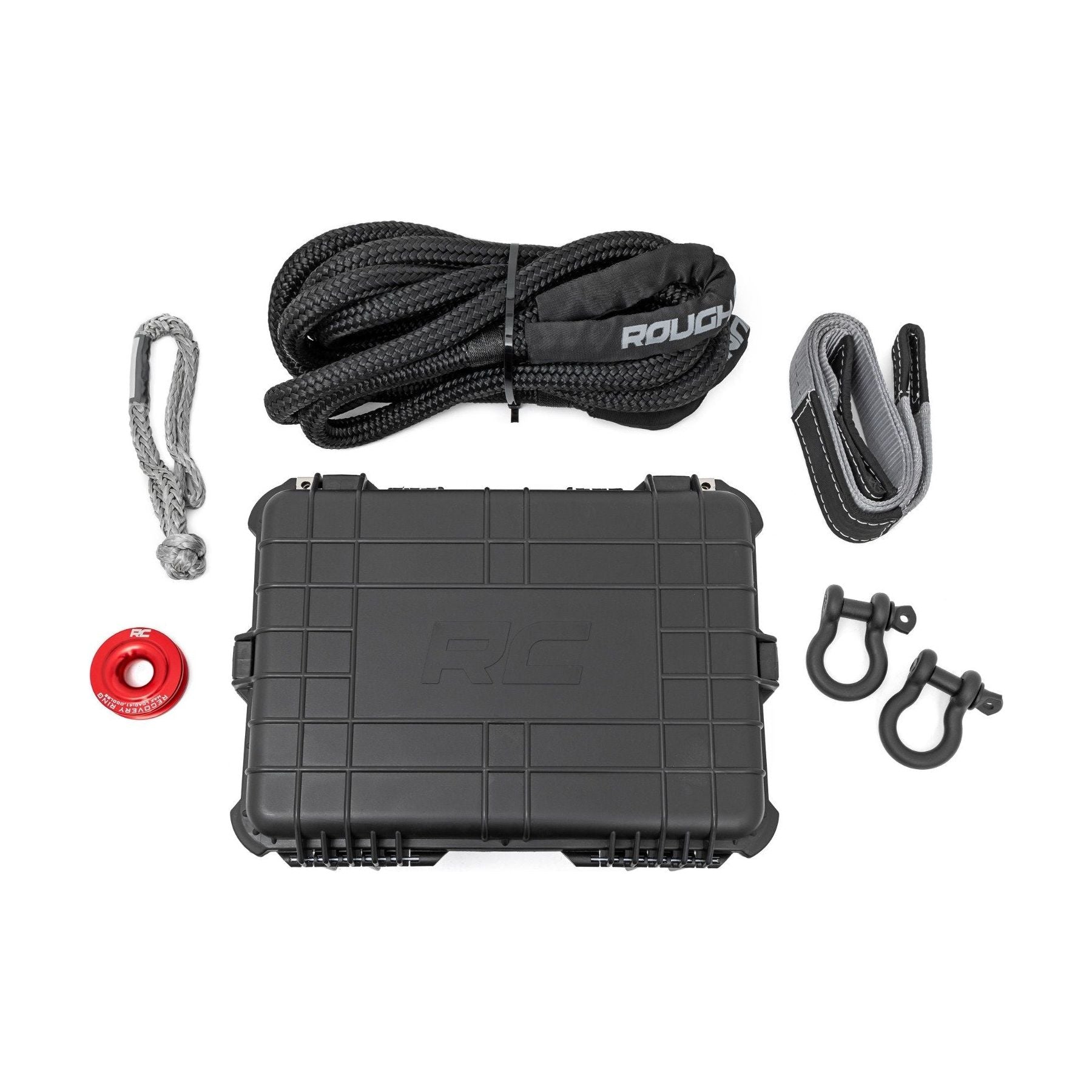 Packed with must-have items like a Kinetic Rope, Tree Saver, D-rings, and more, this kit ensures you're prepared for any terrain challenges. Plus, it all comes neatly organized in a waterproof, impact-resistant polymer carry case, so you can easily store it in your vehicle without worrying about damage. Stay prepared and conquer the trail with Rough Country's Winch Recovery Kit.