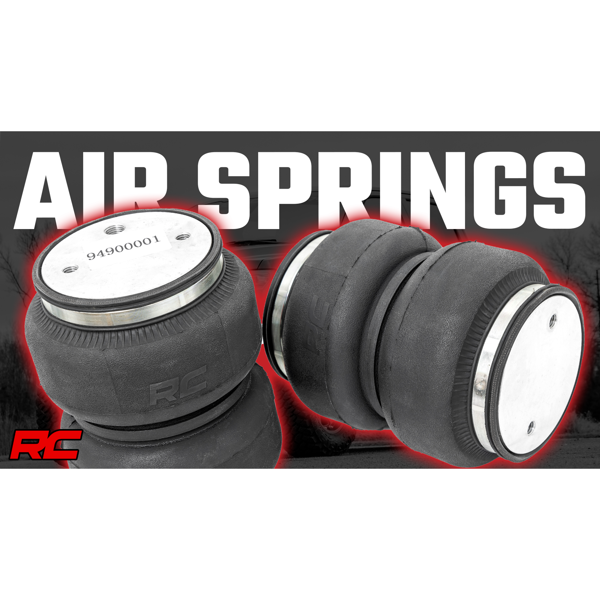 Heavy-duty Construction. Rough Country's Rear Air Spring Kit features two RC branded high-quality double convoluted airbags complemented with DOT-approved airlines. Whether you plan on towing or hauling in the not-so-distant future Rough Country's Air Spring kit is the must-have accessory to ensure that your trailer is level reducing the weight off of the tongue of your trailer. Each kit offers 1/4" push connector fittings and all of the bracketry needed to ensure installation is lightning fast and secure! Rough Country's Air Spring kit provides up to 5,000 lbs of load support to ensure that you experience less sway and bottoming out when braking and steering!