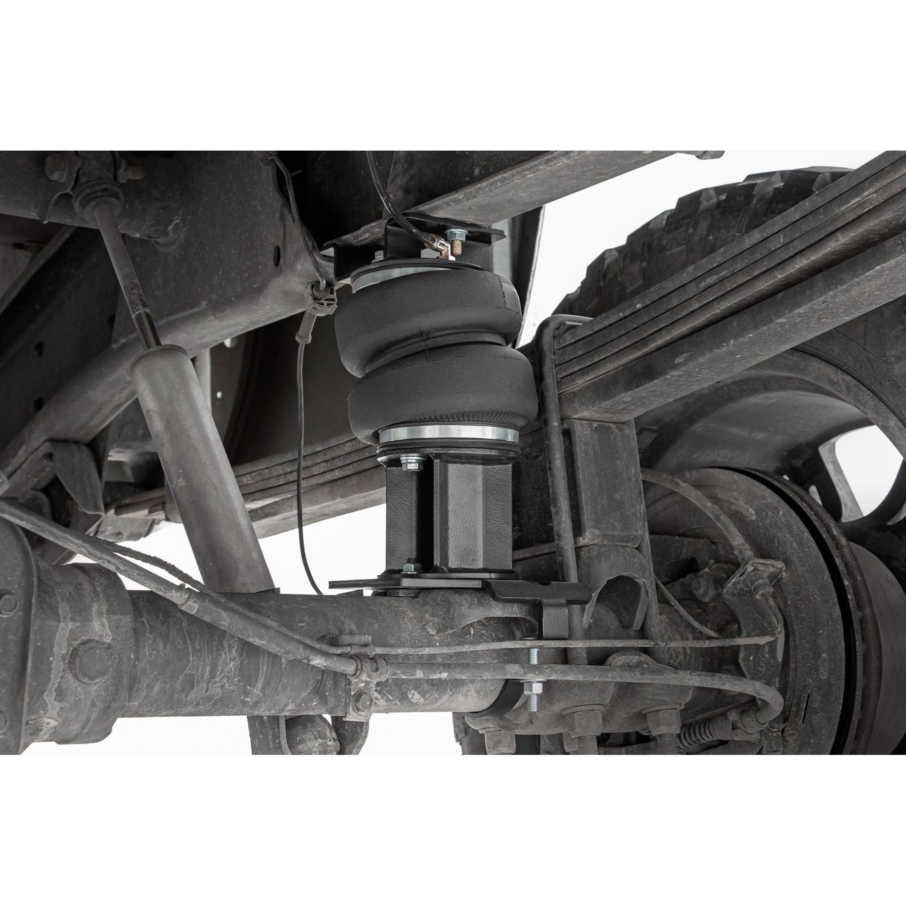 Ideal Leveling. Is your truck your workhorse? The main attraction to the pick-up line is the accessibility to haul and tow as desired. However, due to the amount of weight in the bed, or the condition of the vehicle's rear leaf springs, this can cause the vehicle to be un-level when under load. Here at Rough Country, we created an innovative new product to ensure that these are troubles of the past. Introducing, Rough Country's Rear Air Spring Kit.