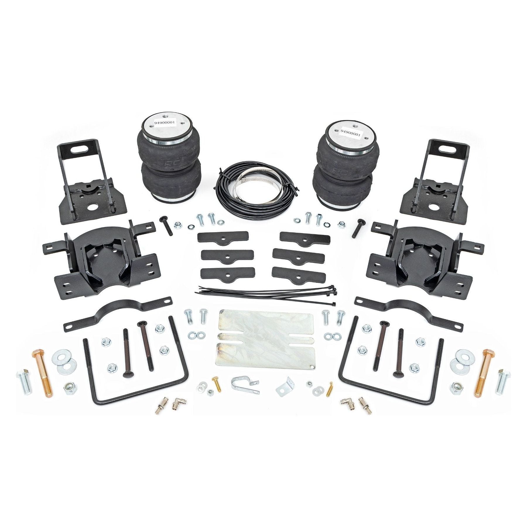Heavy-duty Construction. Rough Country's Rear Air Spring Kit features two RC branded high-quality double convoluted airbags complemented with DOT-approved airlines. Whether you plan on towing or hauling in the not-so-distant future Rough Country's Air Spring kit is the must-have accessory to ensure that your trailer is level reducing the weight off of the tongue of your trailer. Each kit offers 1/4" push connector fittings and all of the bracketry needed to ensure installation is lightning fast and secure! Rough Country's Air Spring kit provides up to 5,000 lbs of load support to ensure that you experience less sway and bottoming out when braking and steering!