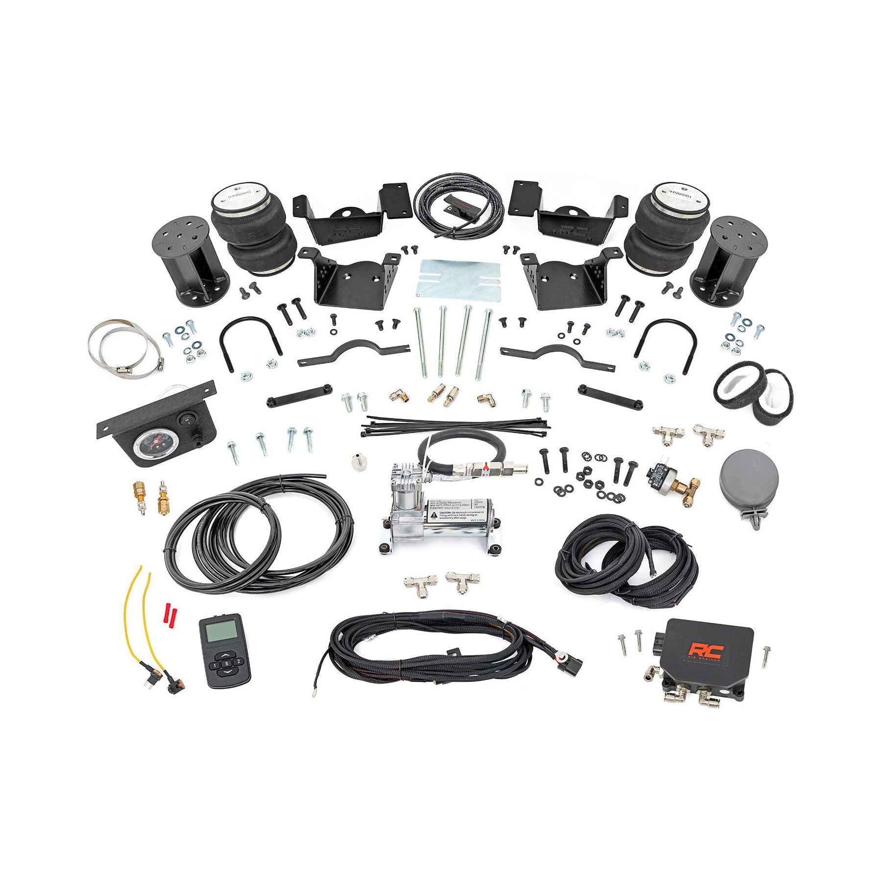 Is your truck your workhorse? The main attraction to the pick-up line is the accessibility to haul and tow as desired. However, due to the amount of weight in the bed, or the condition of the vehicle's rear leaf springs, this can cause the vehicle to be un-level when under load. Here at Rough Country, we created an innovative new product to ensure that these are troubles of the past. Introducing, Rough Country's Rear Air Spring Kit.
