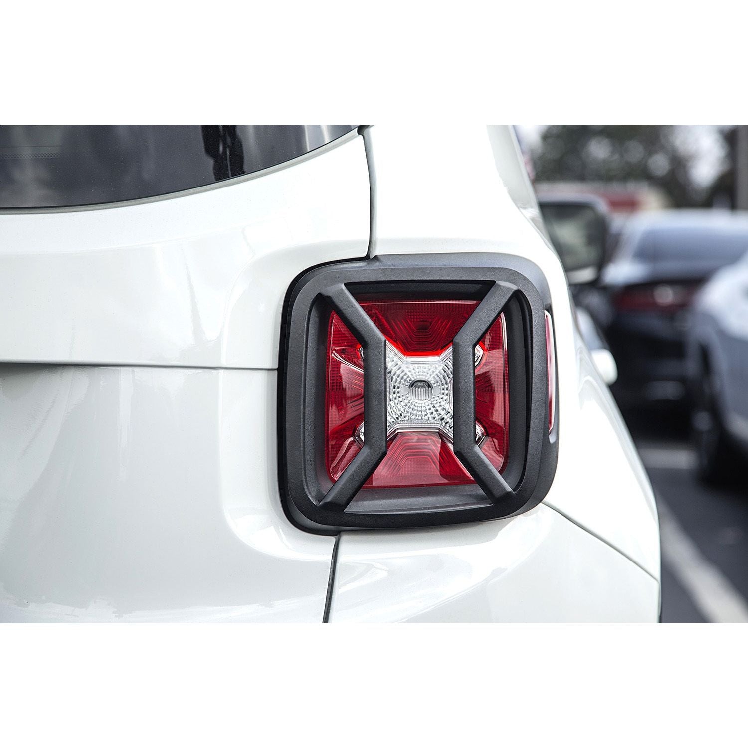 Add a stylish touch of off-road inspired protection to the iconic Renegade tail lights with Rugged Ridge Renegade Taillight Euro Guards. Constructed of high-strength steel to provide real-world protection for your lights, the Rugged Ridge Renegade Euro Guard is styled to accent the factory lens design that sets the Jeep Renegade apart from the rest. Each guard is finished in a sleek textured black powder coat that will look great, on or off-road, for years to come. Installs easily in minutes with the included double-sided automotive grade adhesive. (Sold in pairs)