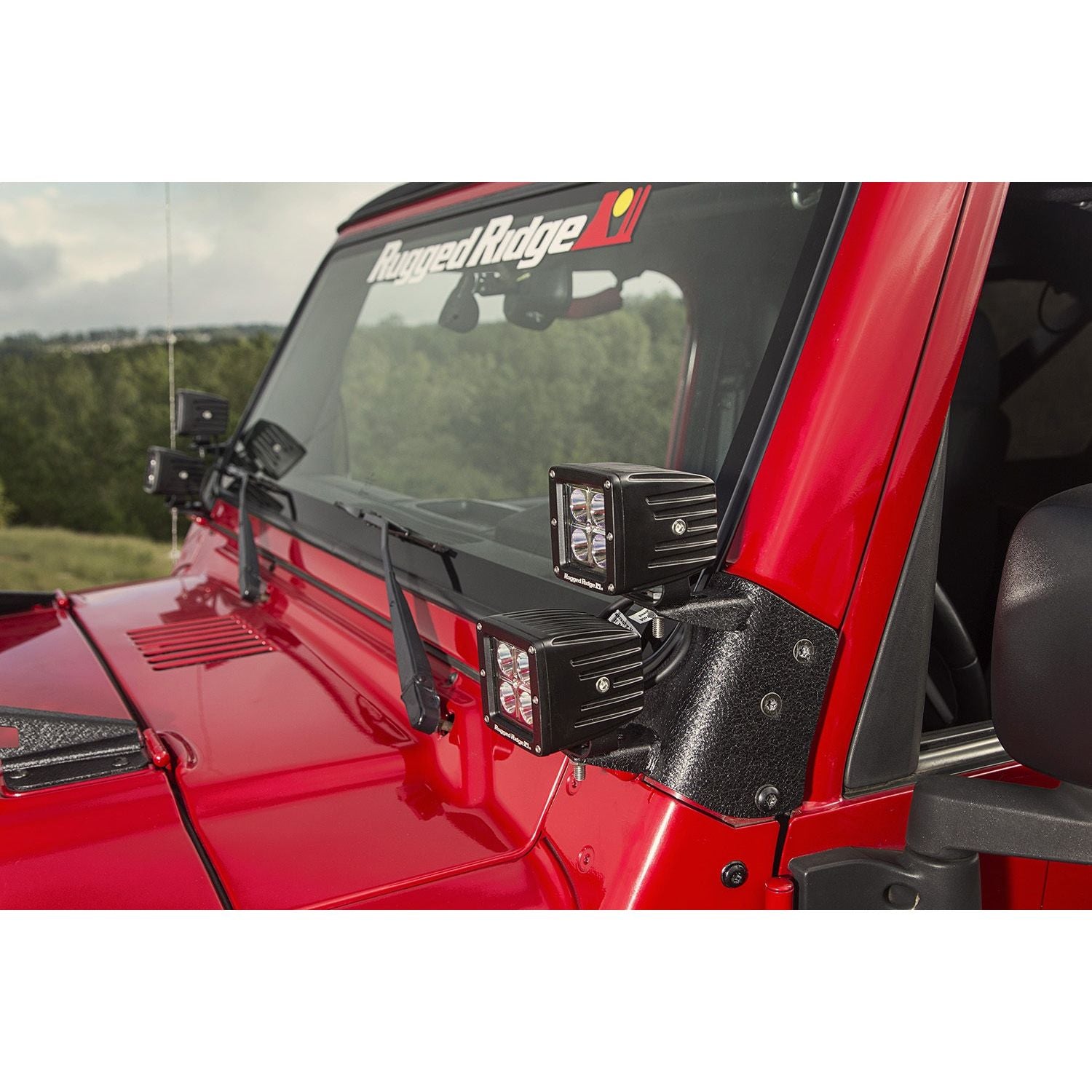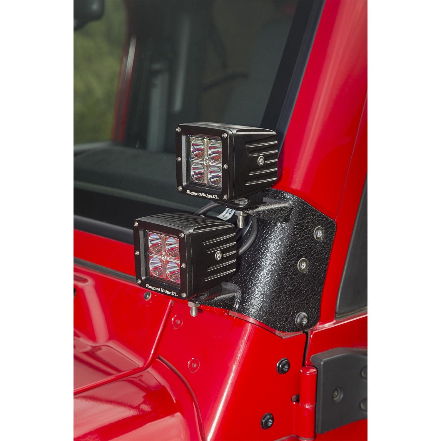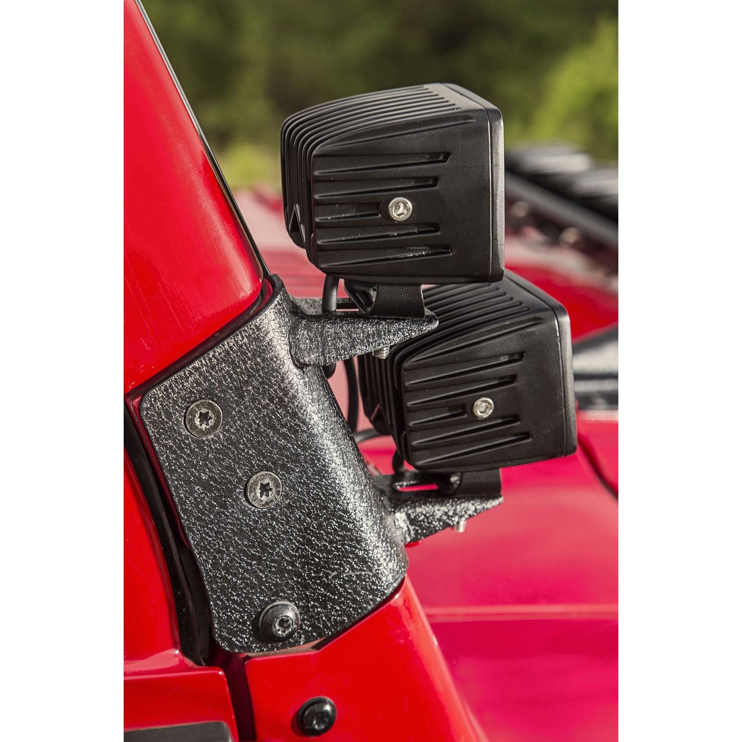 Optimize your off-roading adventure with the best lighting solutions on the market. Designed to accommodate a variety of auxiliary off-road lights, Rugged Ridge designed this new light mount to allow you to place lights in positions that yield the most visibility on the trail. This dual A-pillar light mount is constructed from heavy-duty steel and is easily attached to the lower windshield mount using existing factory mounting holes. No drilling or cutting is required for installation.