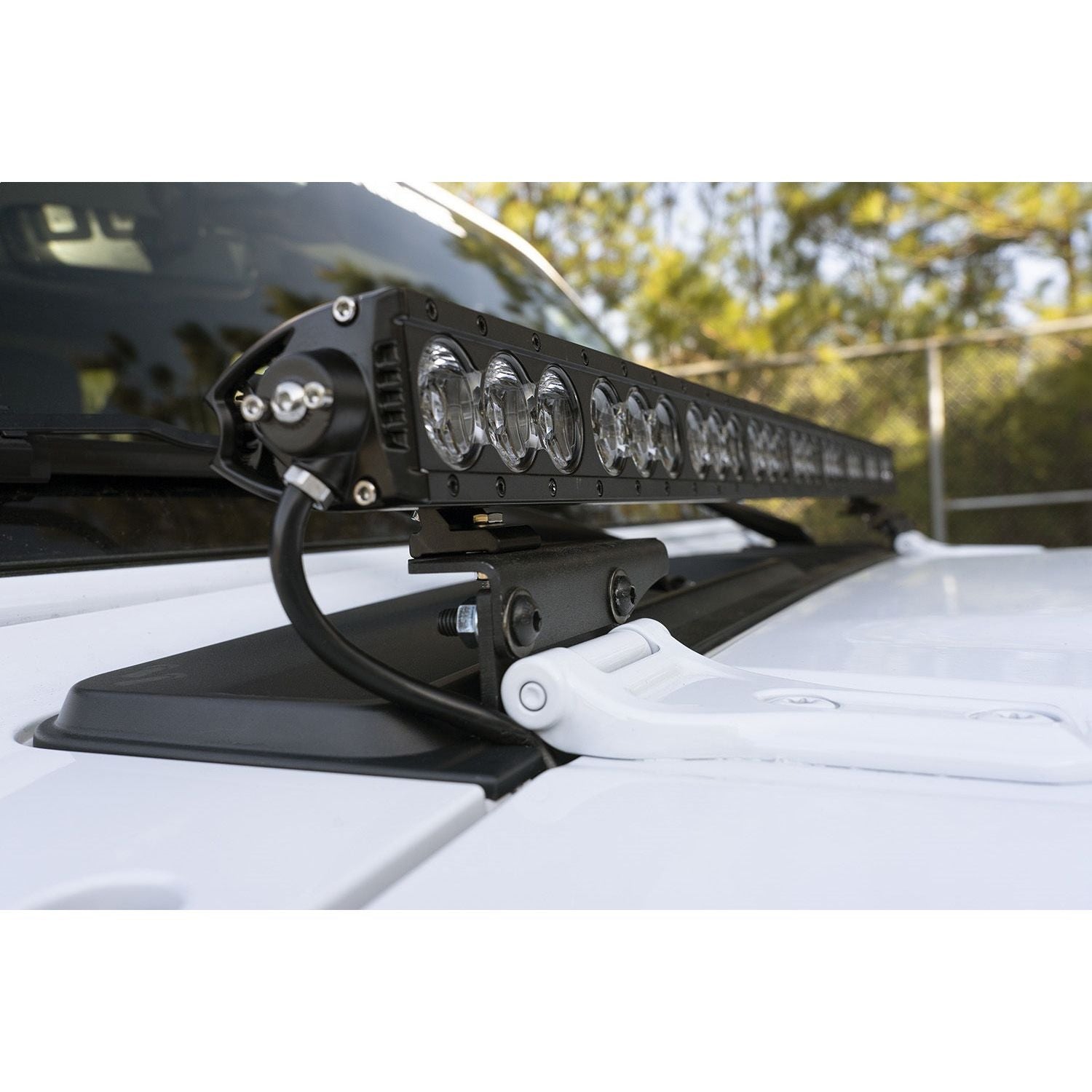Now Wrangler JL and Gladiator JT owners have a clean and simple way to add LED illumination to their rigs with minimal modification. The Rugged Ridge Cowl Light Bar Bracket Set mounts directly to the hood hinge mounting points on the cowl, an ideal placement for any 40 in. LED light bar to deliver maximum visibility on even the darkest trail. Sturdy steel construction and a tough satin black powder coat finish makes these mounts stable and virtually indestructible. Installation is simplified with the included mounting hardware and instructions.