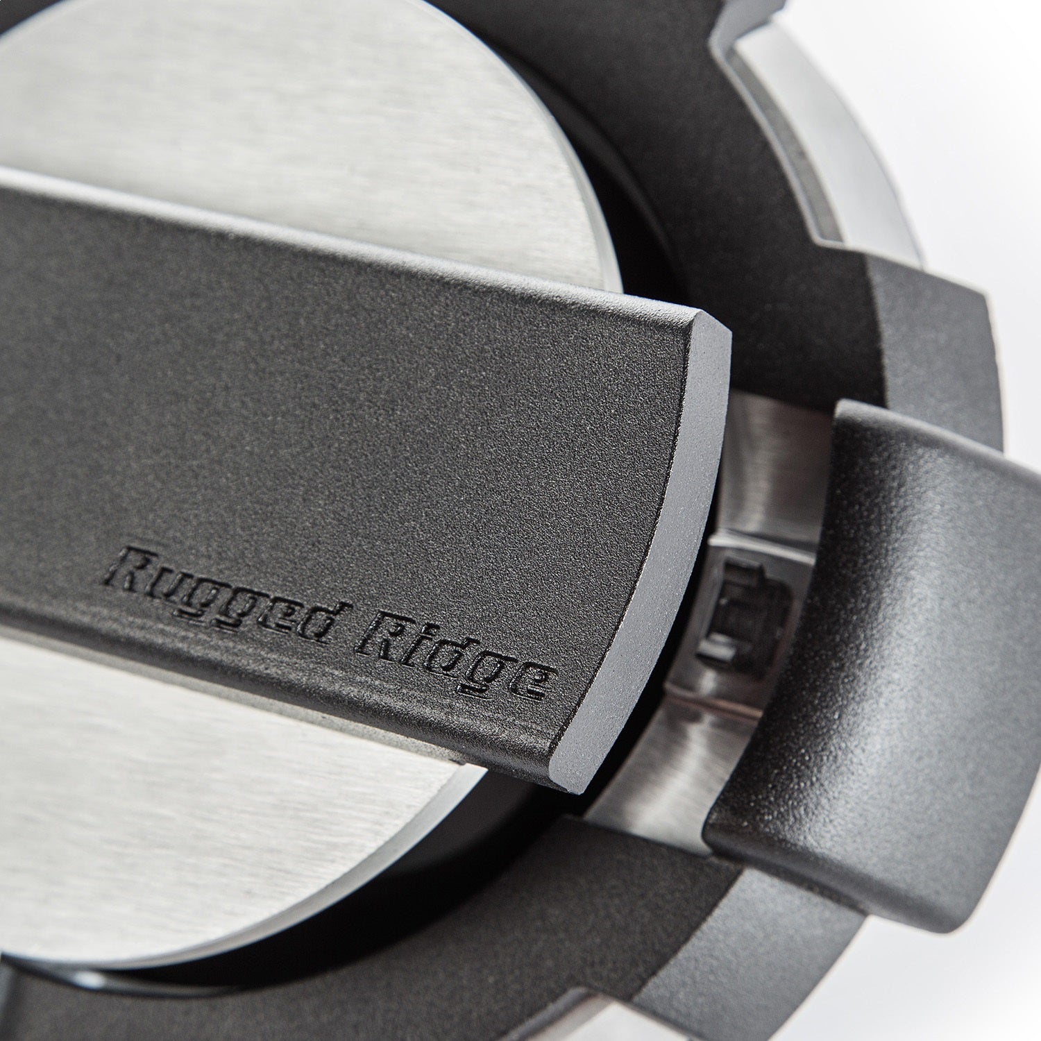 The Rugged Ridge Elite Series Fuel Door for '07-'16 Wrangler combines rugged styling, refined details and smooth mechanical operation into a fuel door that truly makes a lasting impression. Not just a cover for the factory JK fuel filler housing, the Rugged Ridge Elite Fuel Door cover replaces it with a sturdy cast aluminum housing fitted with a smooth-operating internal hinge and a positive retention latch that you press to open and close. A fuel-resistant satin black textured powder coat finish with stunning brushed aluminum accents and easy, no-drill installation will surely make you one of the ELITE.