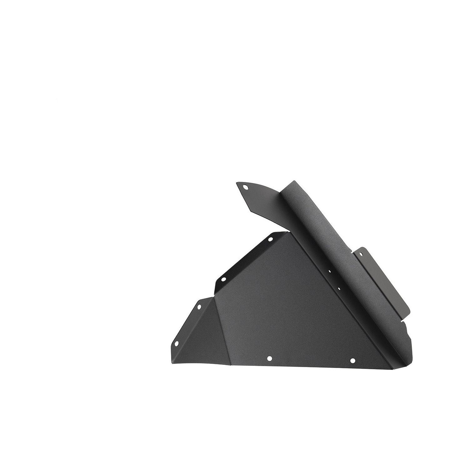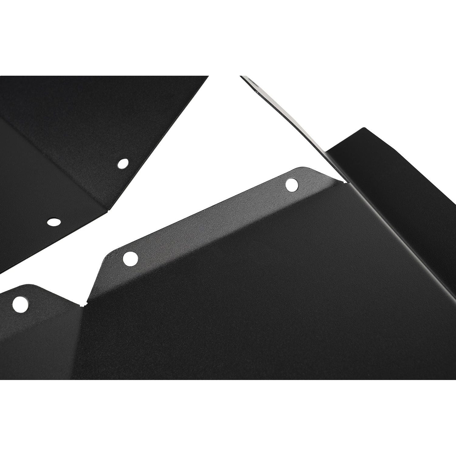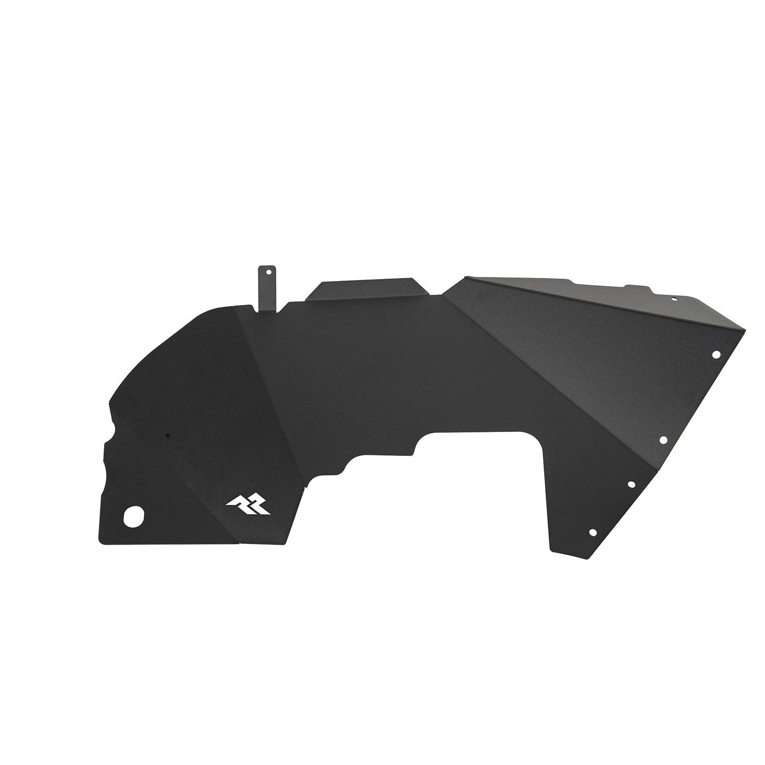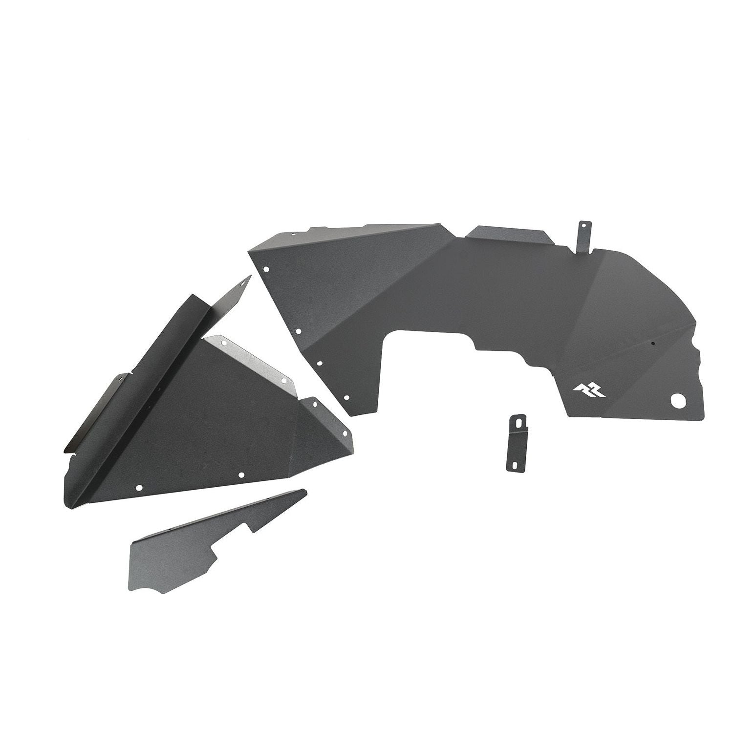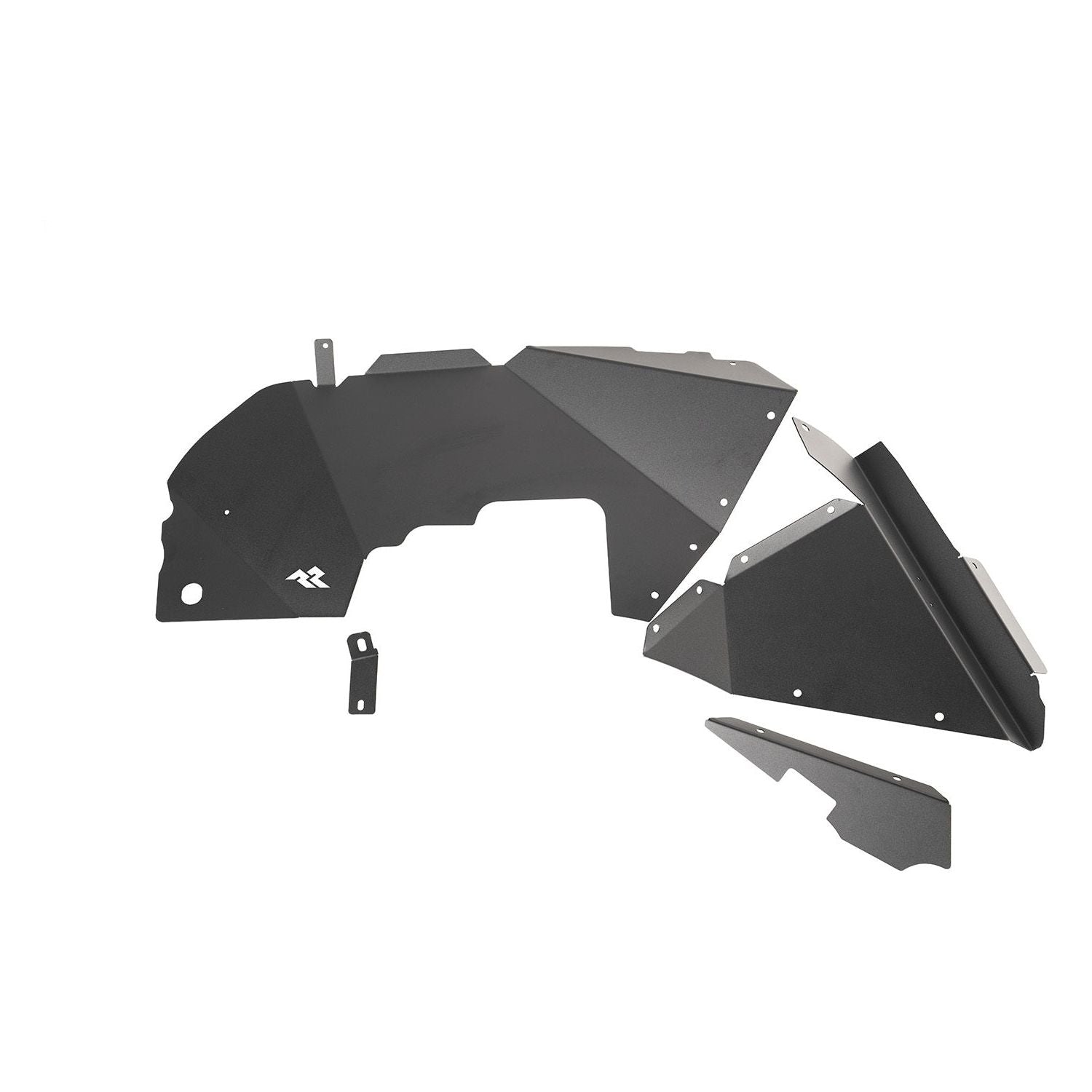 Rugged Ridge Aluminum Inner Fender Liners are a crucial element to building your off-road beast. Crafted from lightweight 1/16- in. aluminum, CNC laser cut and bent for a perfect fit, these inner fenders protect your engine compartment from mud and debris and look phenomenal doing it. Designed to work with trimmed OE flares and most aftermarket fenders, these inner fenders give you that additional clearance you're looking for when running bigger tires. Integrated splash shields offer full coverage that surpasses the flimsy factory liner, while a durable black powder coated finish makes sure things remain stunning, even under layers of mud & muck. Rugged Ridge Aluminum Inner Fender Liners install easily using factory mounting locations with no drilling required.