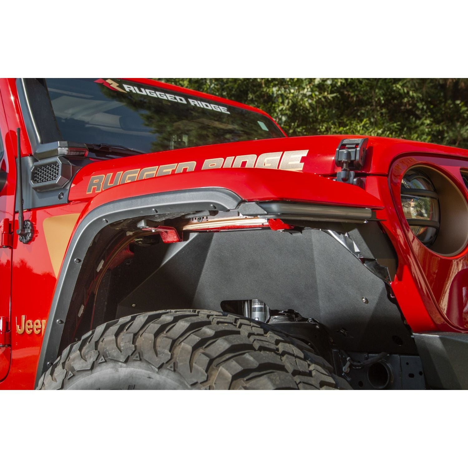 Rugged Ridge Aluminum Inner Fender Liners are a crucial element to building your off-road beast. Crafted from lightweight 14-gauge aluminum, CNC laser cut and bent for a perfect fit, these inner fenders protect your Jeep from mud and debris and look phenomenal doing it. Designed to work with trimmed OE flares and most aftermarket fenders, these inner fender liners offer maximum coverage while giving you that additional clearance you're looking for when running bigger tires. Engineered to offer protection that far surpasses those flimsy factory liners with a durable satin black powder coated finish makes sure things remain stunning, even under layers of mud & muck. Rugged Ridge Aluminum Inner Fender Liners install easily using factory mounting locations with no drilling required. Stainless Steel mounting hardware is included.