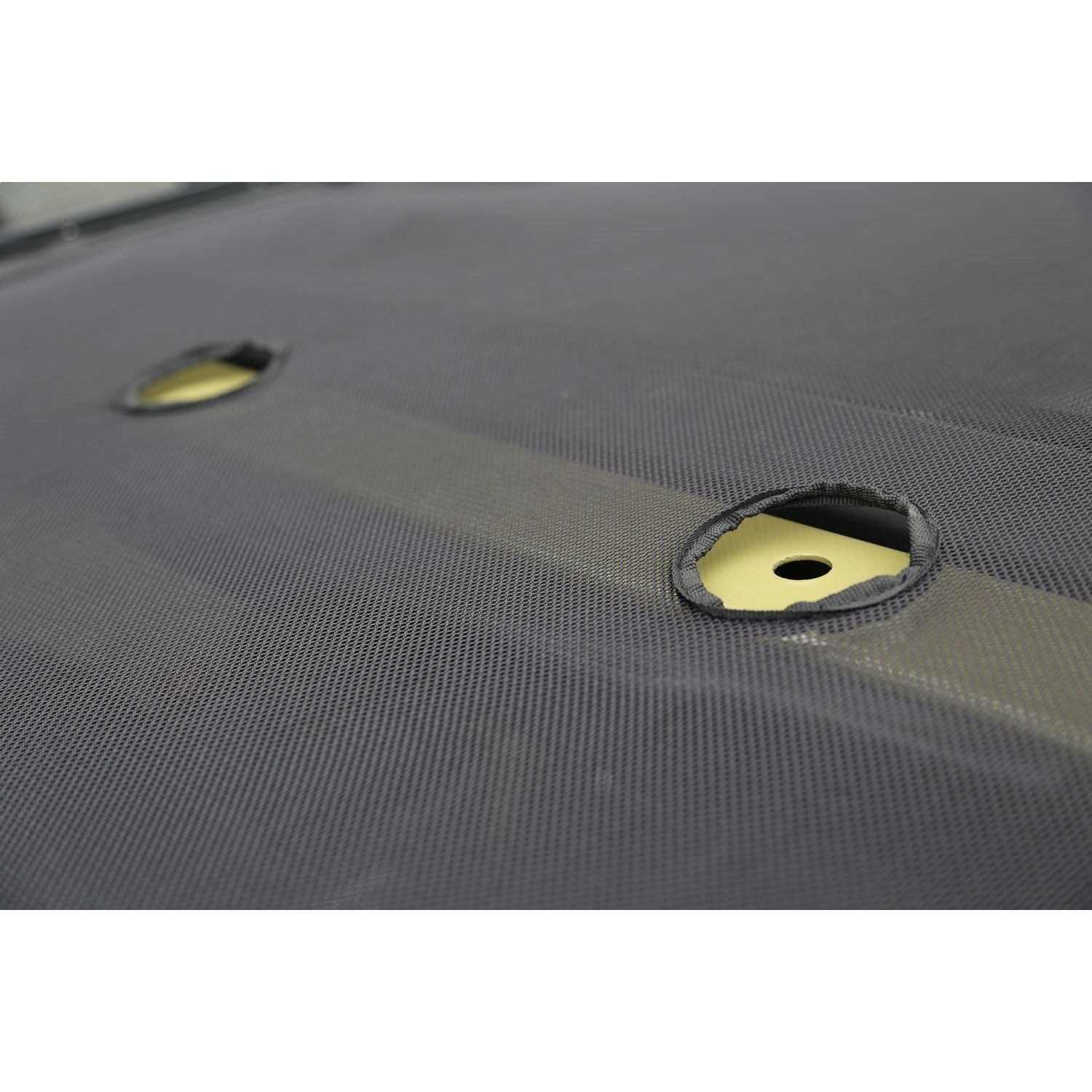 Looking for a summer top that is easy to install and remove? The Rugged Ridge Eclipse Sunshade gives the open air and top down feeling you want, while providing added protection from harsh sunlight. Featuring reinforced mesh construction, the half sun shade installs between the front portion of a JK sport bar and windshield to protect either front or rear passengers separately. The full-length sun shade is secured between the windshield and the rear crossbar of the JK sport bar to protect both front and rear passengers simultaneously. By using the mesh material with built-in elastic straps, this sunshade was designed from the start to eliminate the need for a header channel as with other similar products. An all-in-one package, this sunshade is simple to install and does not require any modifications. By retaining access to the Jeep top clamps, drivers can keep the shade in place and preserve function of the factory top. The Eclipse Sun Shade installs with sewn-in bungee cords and a small mesh carrying bag for storage when not in use. Compact in size, the Rugged Ridge sun shade can be stored in just about any compartment of your Jeep for quick access. Available in your choice of tough black or hot red.