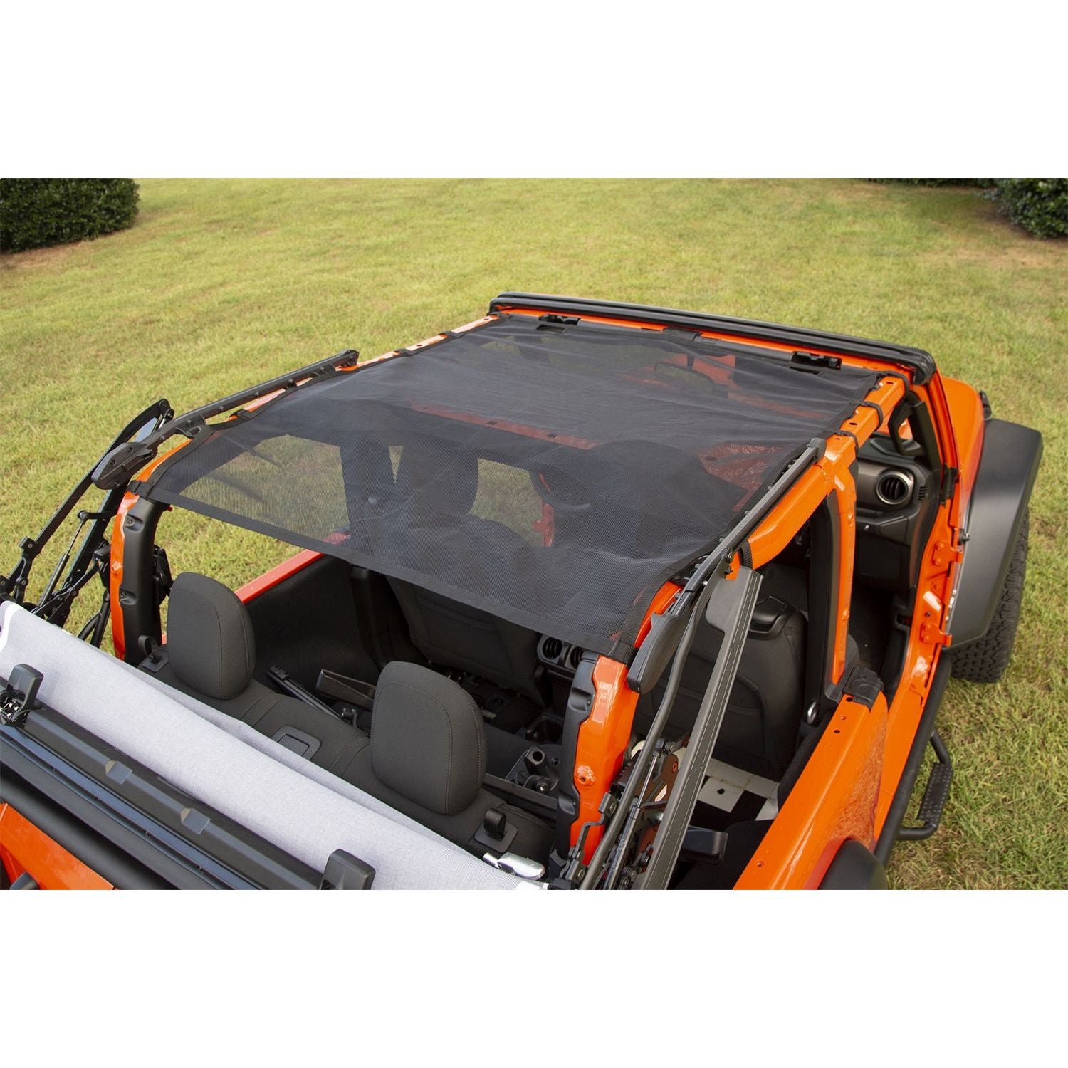 Looking for a summer top that is easy to install and remove? The Rugged Ridge Eclipse Sunshade gives the open air and top down feeling you want, while providing added protection from harsh sunlight. Featuring reinforced mesh construction with integrated straps, the half sun shade (13579.74) installs between the front portion of the JL sports bar and windshield to protect front seat passengers while the full-length sun shade (13579.75) is secured between the windshield frame and the rear portion of the JL sports bar to protect both front and rear passengers simultaneously. An all-in-one package, this sunshade is simple to install and does not require any modifications. By retaining access to the Jeeps top clamps, drivers can keep the shade installed while maintaining full functionality of the factory soft top. The Eclipse Sun Shade can stay in place year round- making you fully prepared for that first sunny day.