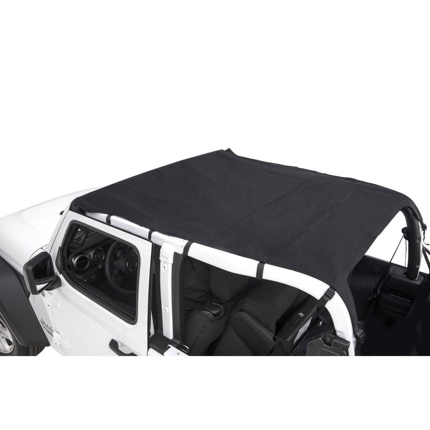 Get your Wrangler JL prepared for warmer weather with the Savannah Brief Top from Rugged Ridge. Constructed from durable Black Diamond sailcloth material, the Savannah Brief Top provides shade for both front and rear seat passengers, making the open air driving experience as enjoyable as an umbrella on the beach. The Savannah top secures to the factory sport bar and roll cage using built-in straps & buckles, delivering a tight, tailored fit that offers a striking appearance and protection from the elements. Includes windshield header channel for a trouble-free installation, so there is nothing more to purchase.